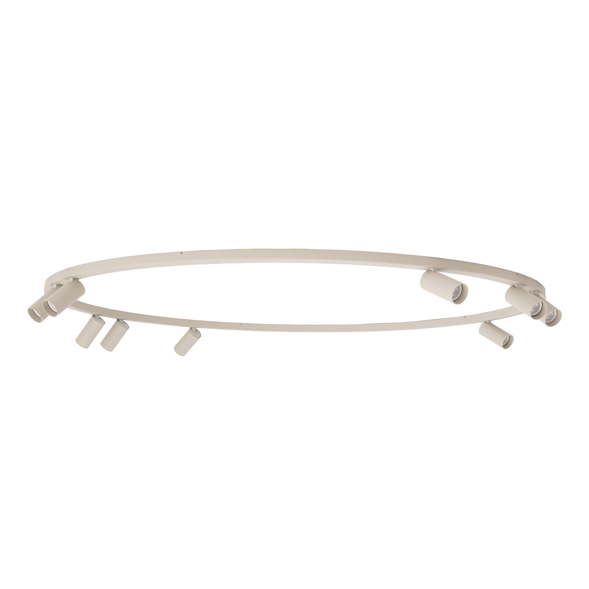 Beżowa lampa sufitowa do salonu nowoczesna 9xGU10 R35 FOURTY ROUND - efektowna lampa sufitowa w formie dużego okręgu z zamocowanymi reflektorami regulowanymi. Beżowa lampa przysufitowa, świetnie sprawdzi się jako nowoczesna lampa do salonu, lampa do kuchni, lampa na korytarz zwłaszcza we wnętrzach o kształcie zbliżonym do kwadratu.