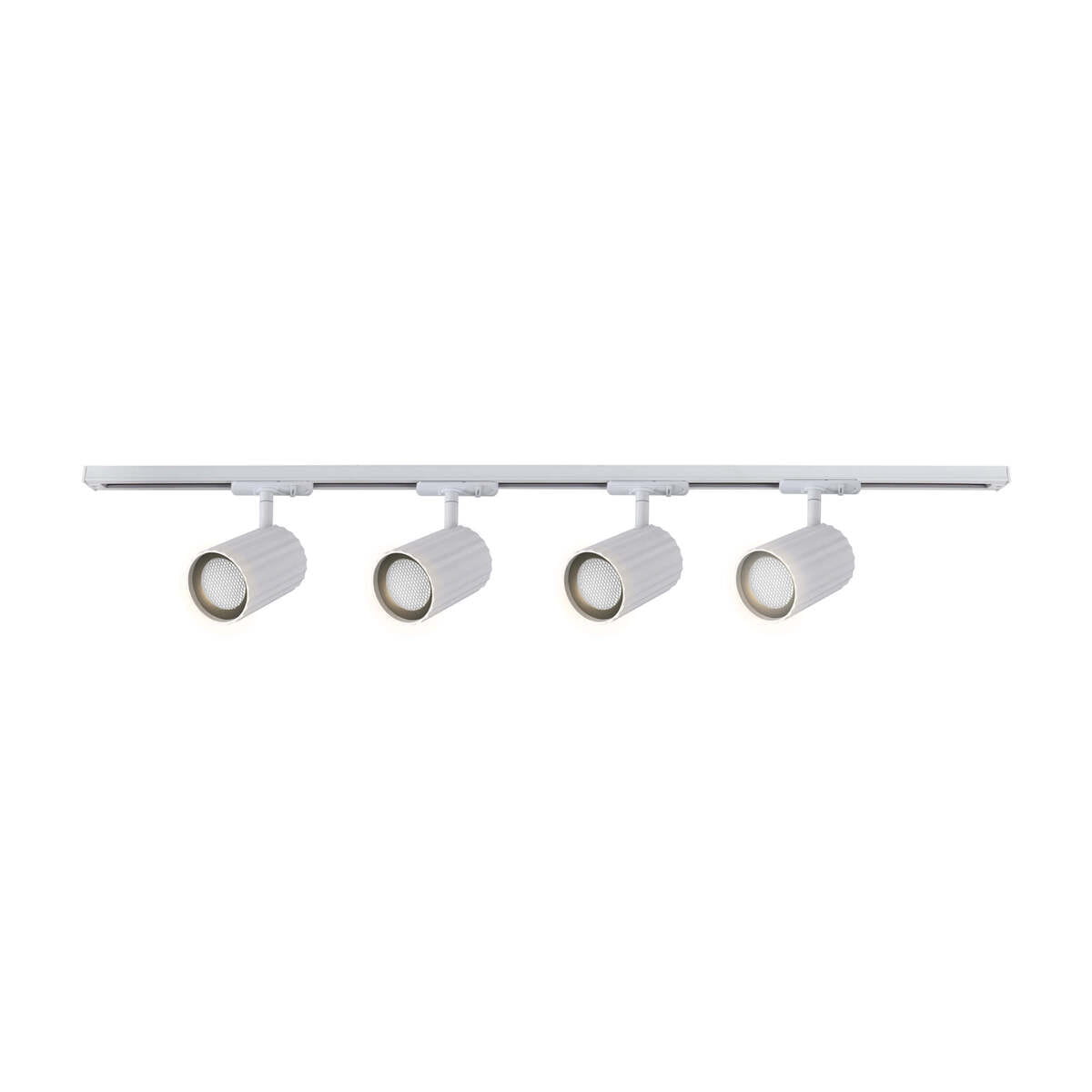Jednofazowy system (1F): Wszystkie reflektorki są sterowane jednym włącznikiem.Długość szyn: Dwie szyny o długości 100 cm każda, łączone za pomocą łącznika, tworzą linię o łącznej długości 210 cm.4 obrotowe reflektorki Tokio z unikalnym efektem "plaster miodu": Możliwość podpięcia w dowolnym miejscu na szynie, skierowania światła tam, gdzie jest to potrzebne.Kompatybilność z żarówkami GU10: Każdy reflektorek jest dostosowany do żarówek GU10 (nie dołączone do zestawu).