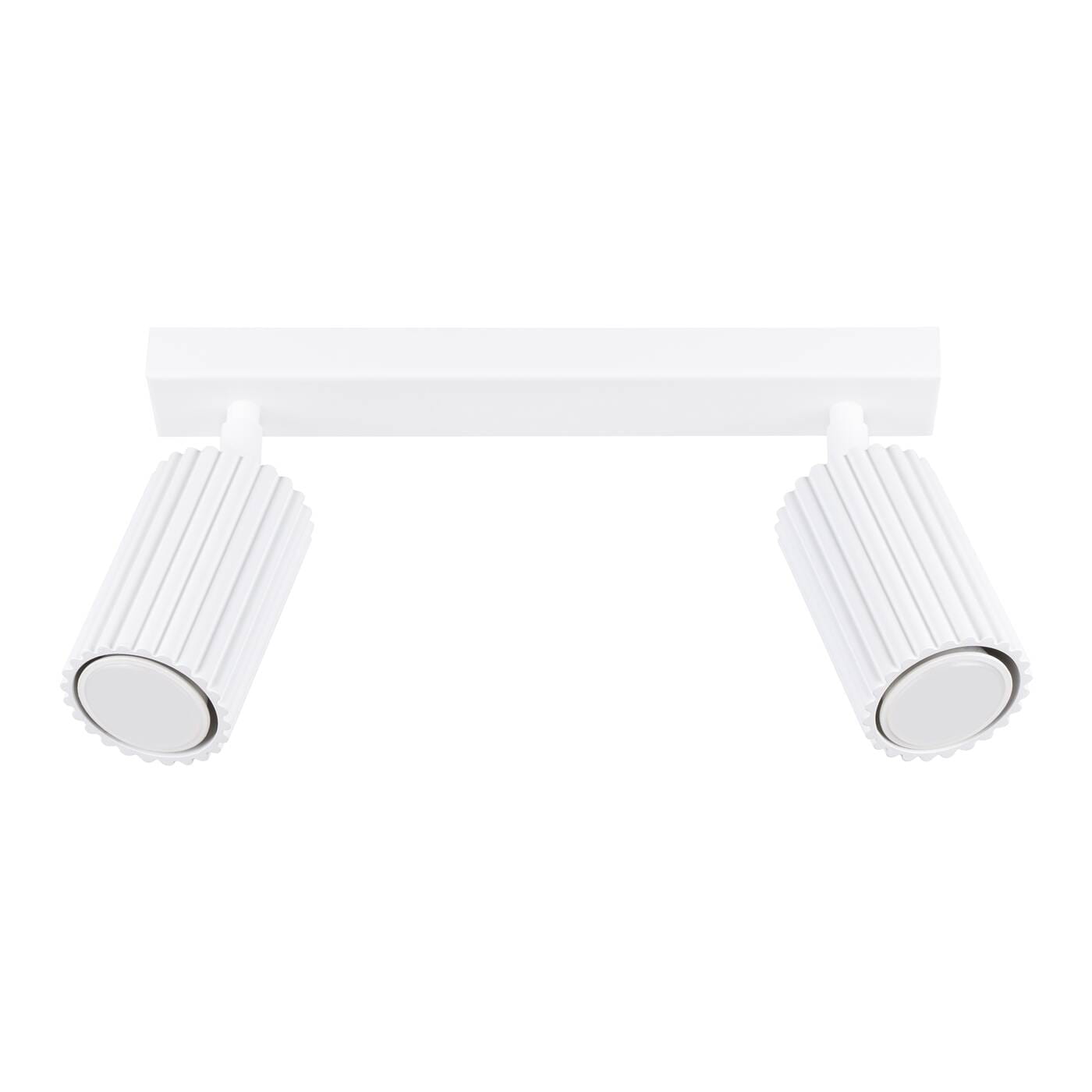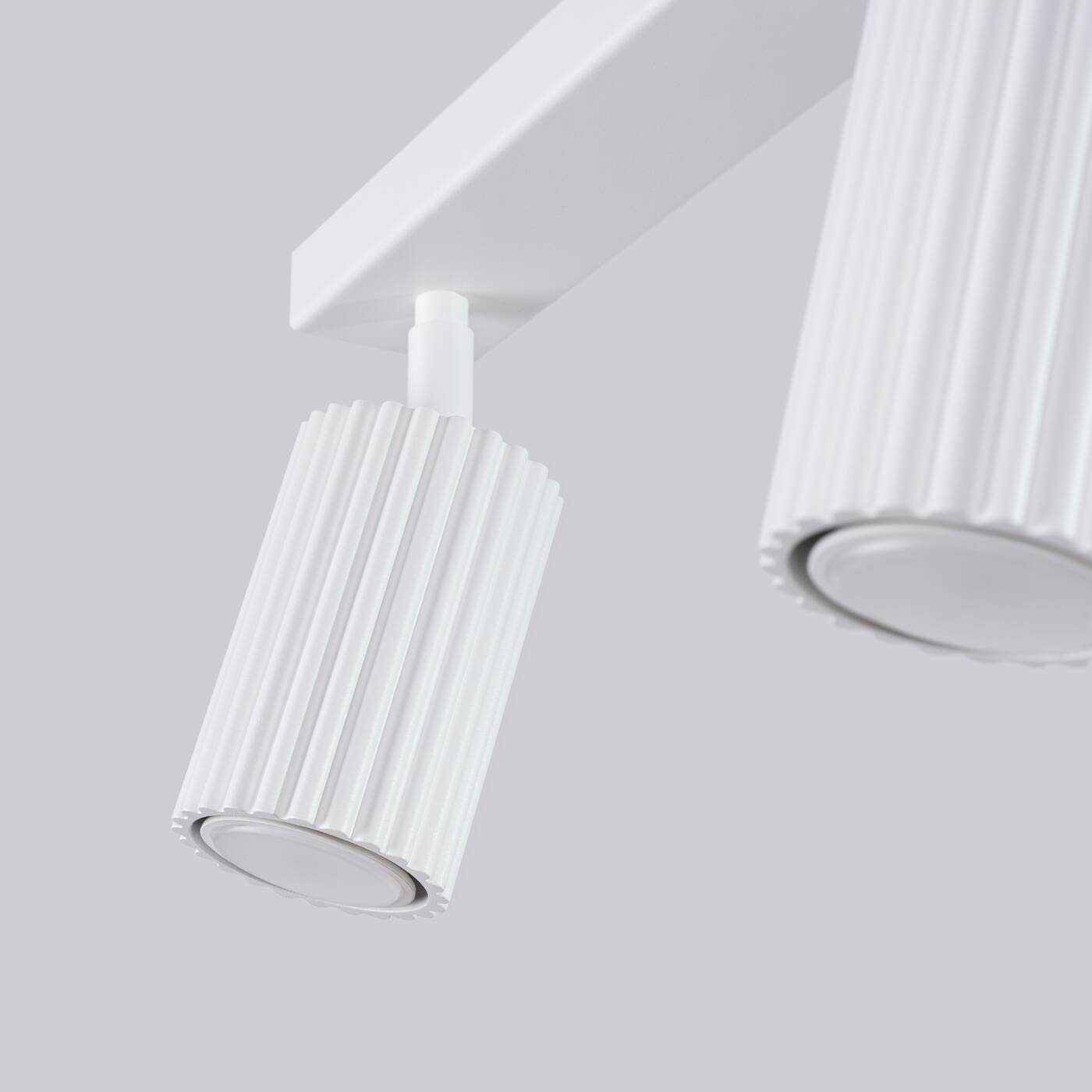 Biała lampa sufitowa ryflowana 2xGU10, plafon KARBON 2 spot - podwójna lampa przysufitowa typu spot z regulowanymi reflektorkami. Nowoczesna lampa do kuchni, lampa na korytarz, lampa do salonu w formie listwy do której zamocowane są niewielkie, ryflowane tuby świetlne.