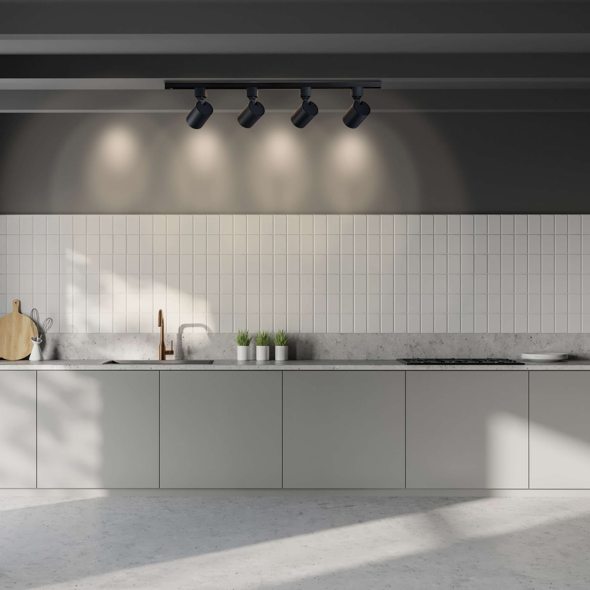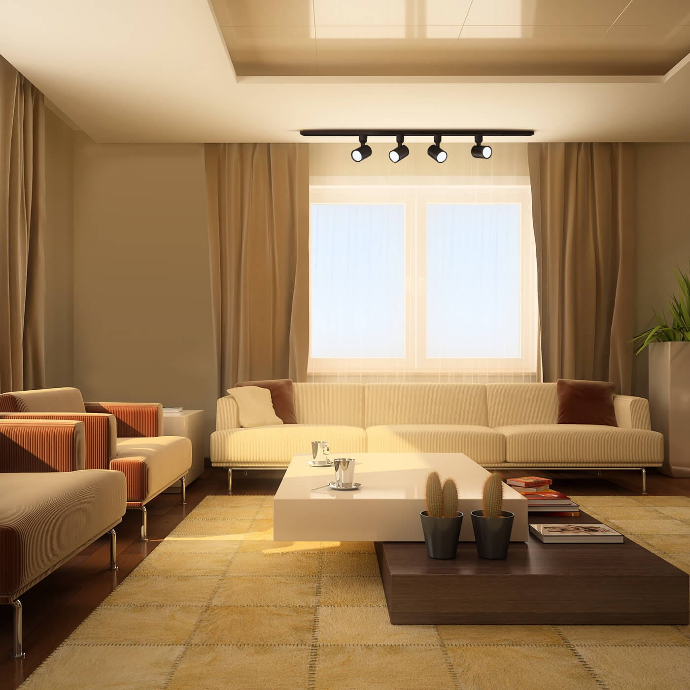 Wszystkie reflektorki są sterowane jednym włącznikiem. Nowoczesna lampa sufitowa listwa SNOW to dwie szyny o długości 75 cm każda, które w połączeniu z łącznikiem tworzą linię o łącznej długości 160 cm oraz 4 obrotowe reflektorki SNOW - można je podpiąć w dowolnym miejscu na szynie i skierować światło, gdzie jest to potrzebne.