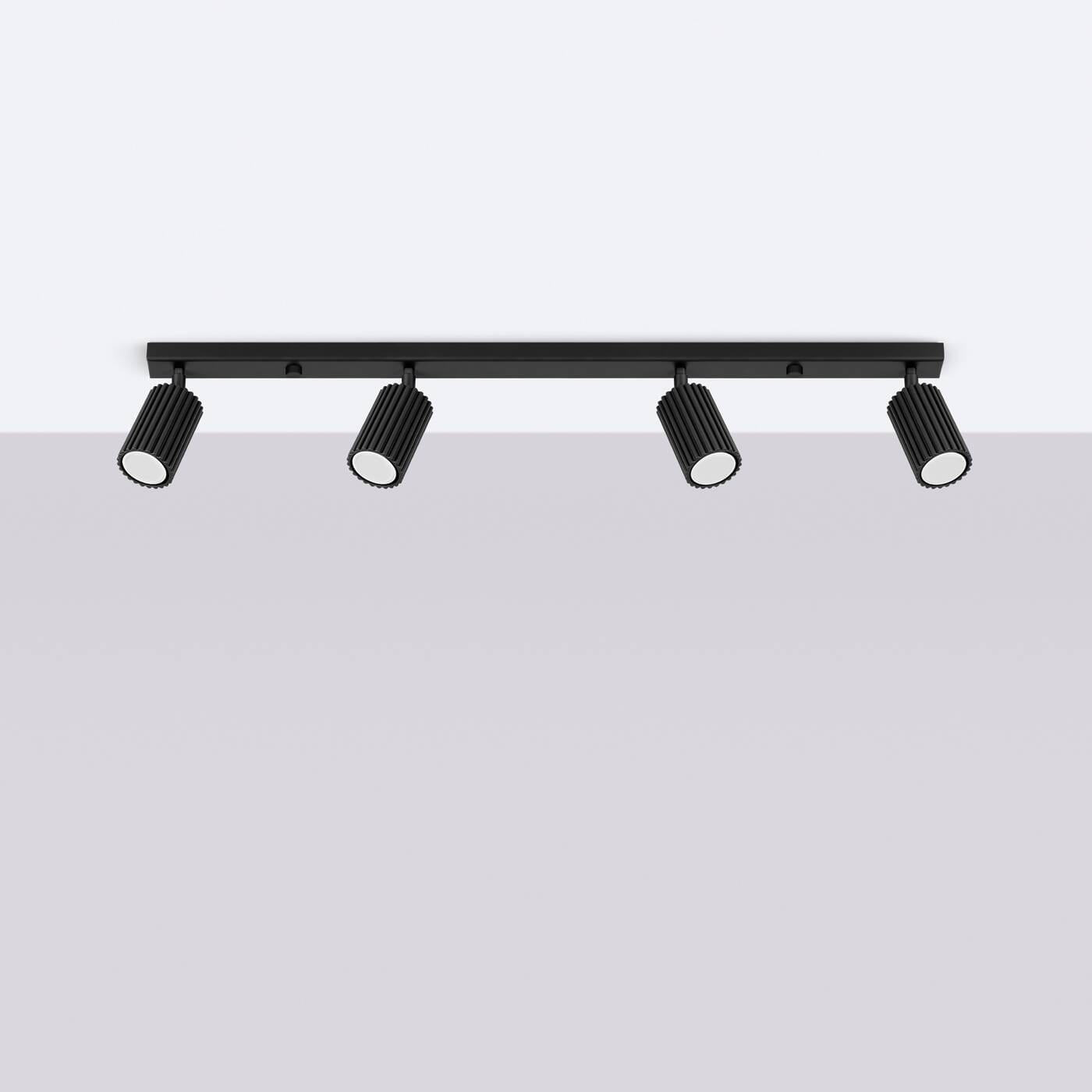 Czarna lampa sufitowa listwa ryflowana spot 4xGU10, plafon KARBON 4L - niewielkie tuby sufitowe typu spot wykonanie z ryflowanego aluminium zamocowane do czarnej podsufitki. Czarna lampa regulowana, świetna jako lampa do kuchni, lampa do przedpokoju, lampa do salonu - oświetla i zachwyca!