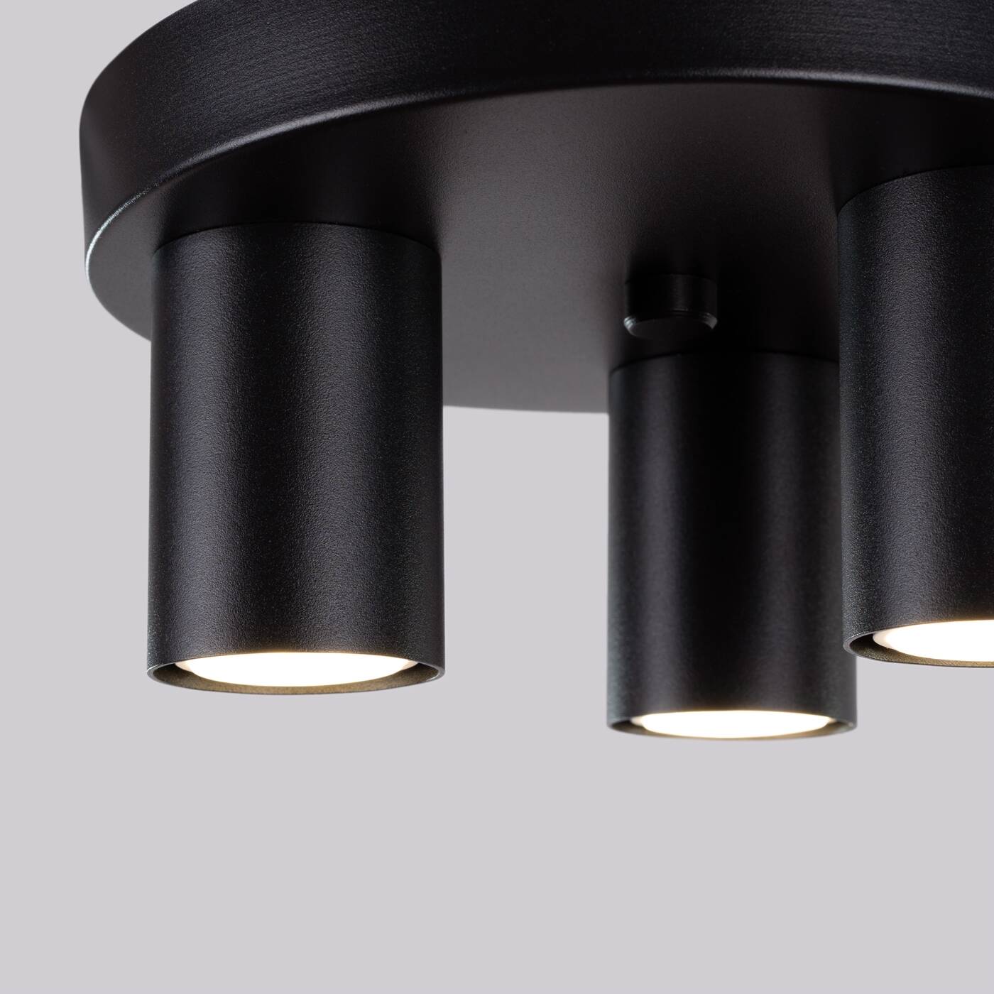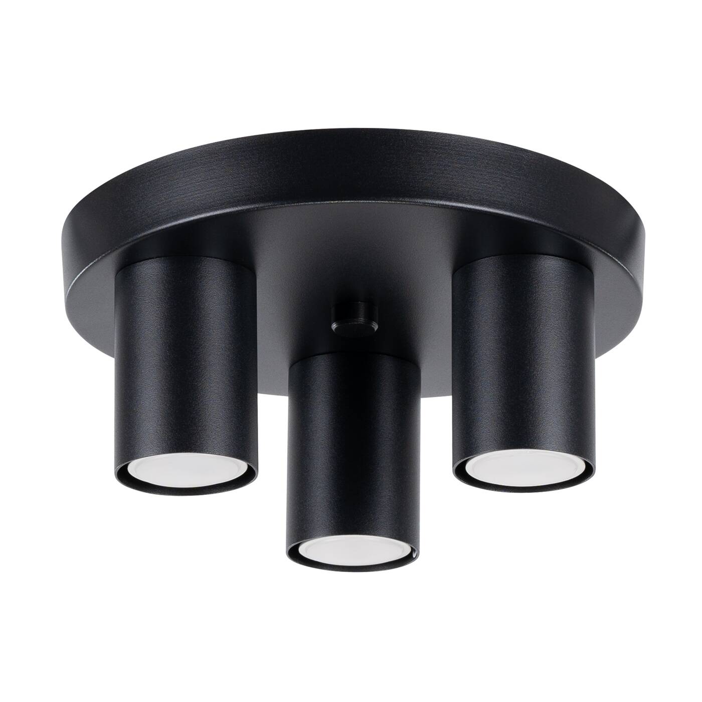 Czarna lampa sufitowa plafon okrągły 3xGU10 LAGOS 3P - lampa do kuchni, lampa do korytarza, nowoczesna lampa do salonu o niewielkiej kubaturze. Trzy małe tuby zamocowane do czarnej podstawy.