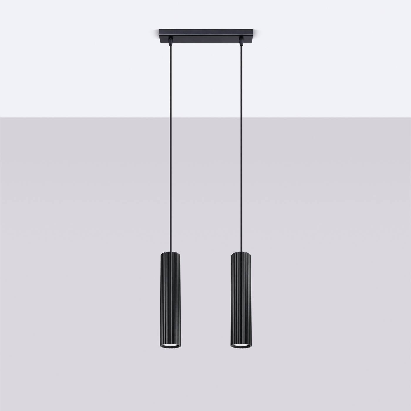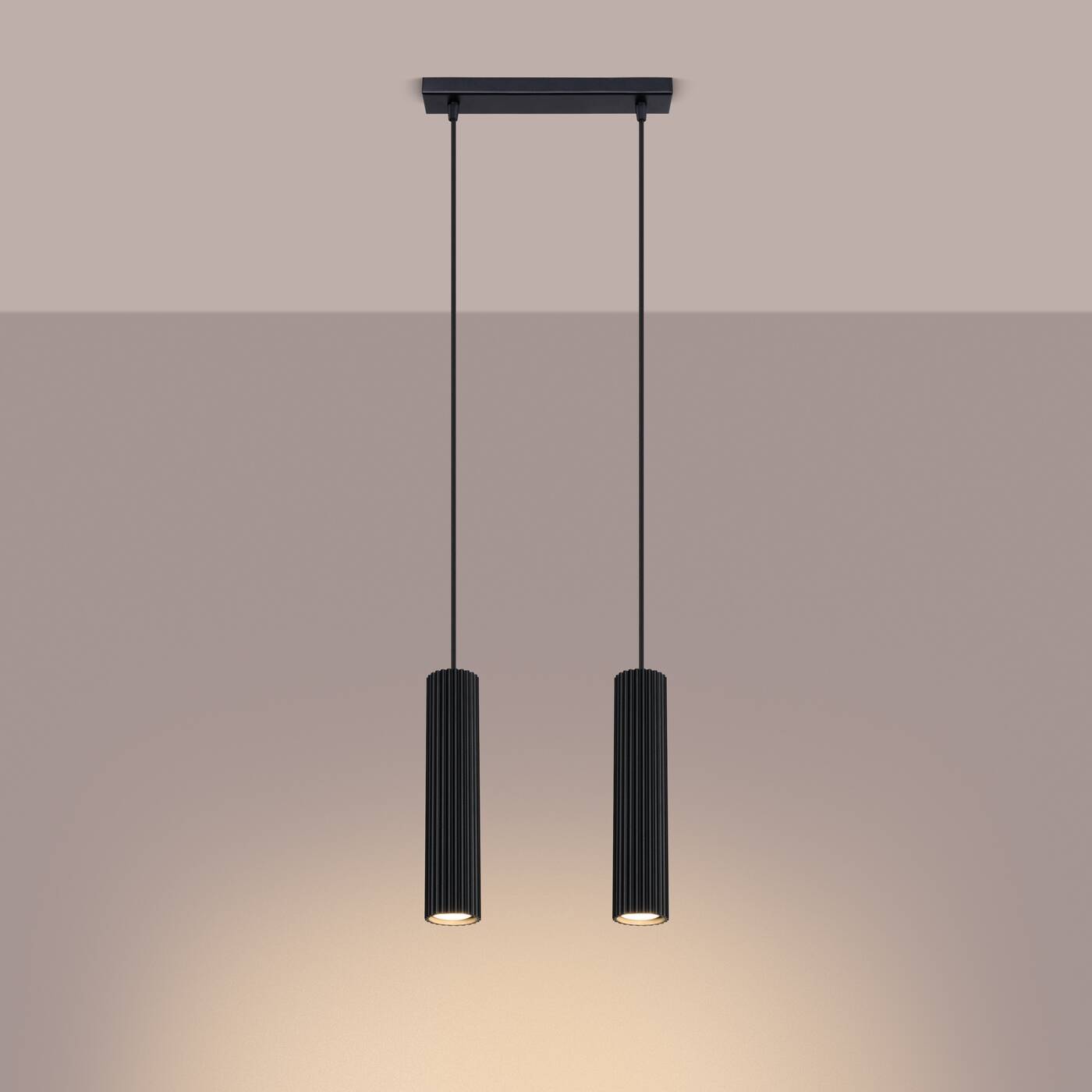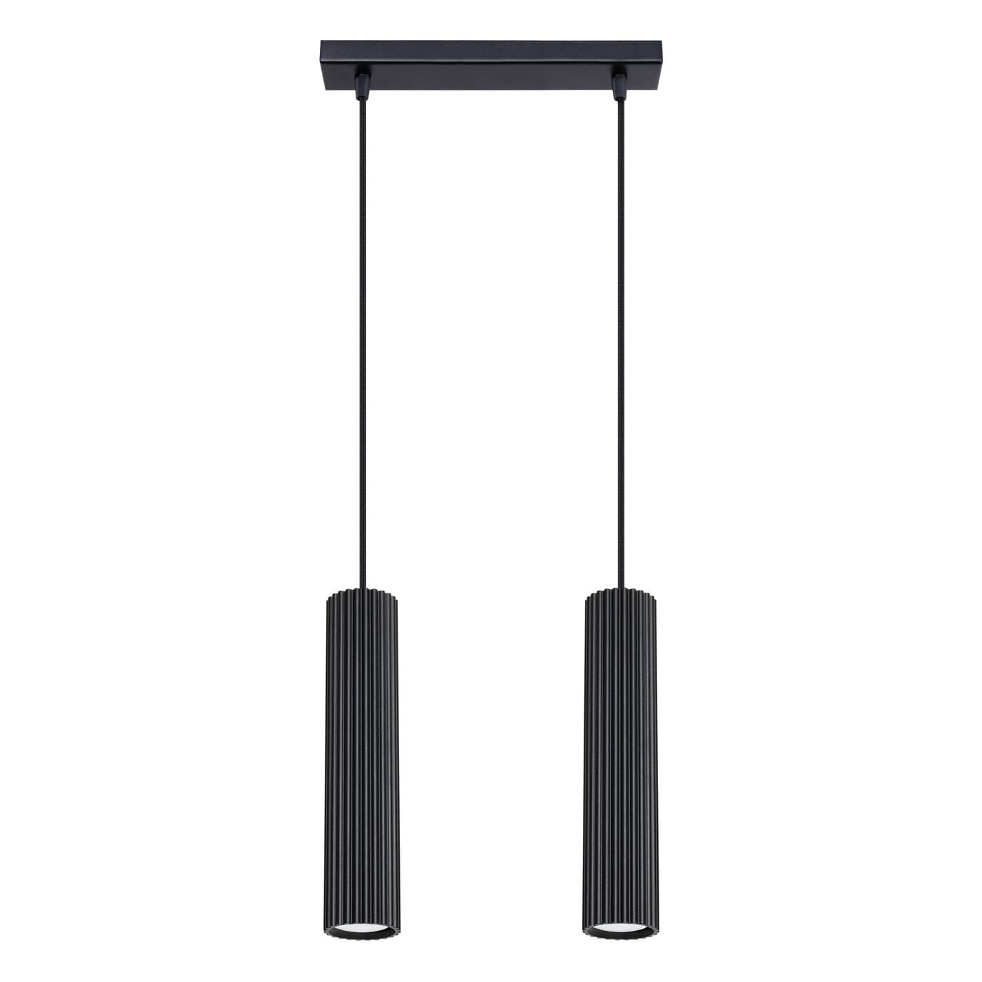 Czarna lampa wisząca podwójna tuby sufitowe ryflowane 2xGU10 KARBON 2 - efektowna, ryflowana lampa wisząca tuby sufitowe czarne podwójne. Lampa nad wyspę kuchenną, lampa do jadalni - świetnie wygląda w aranżacjach z lamelami ściennymi.