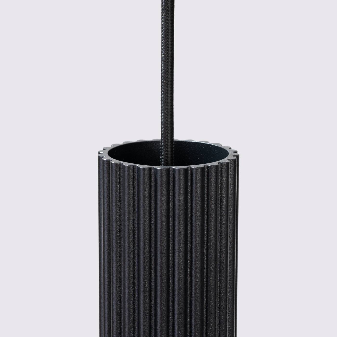 Lampa wisząca tuby podwójne czarne o wyjątkowej ryflowanej strukturze, idealna do aranżacji w nowoczesnych przestrzeniach.