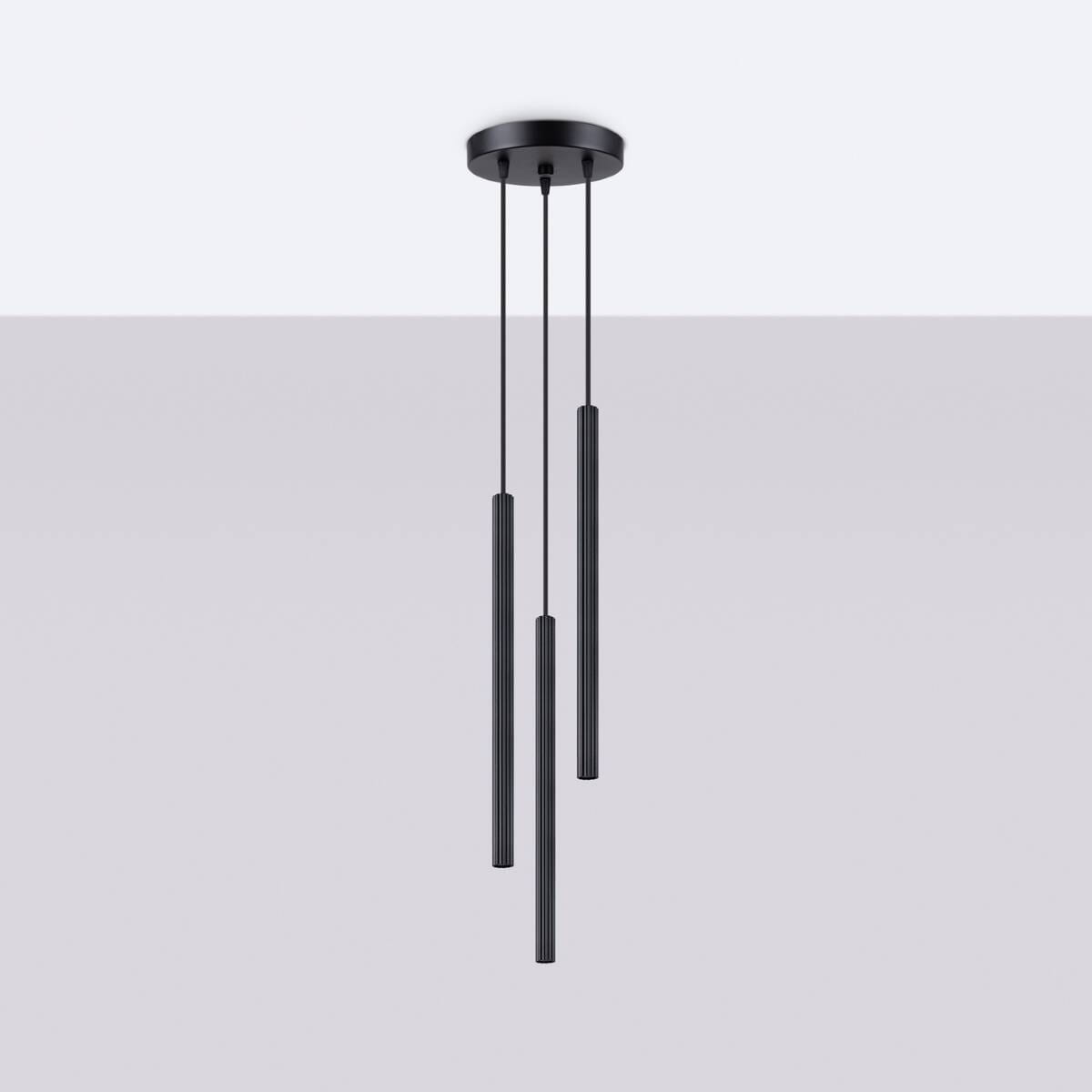 Czarna lampa wisząca potrójna tuby sufitowe ryflowane 120 cm 3xG9 ARCHE 3P