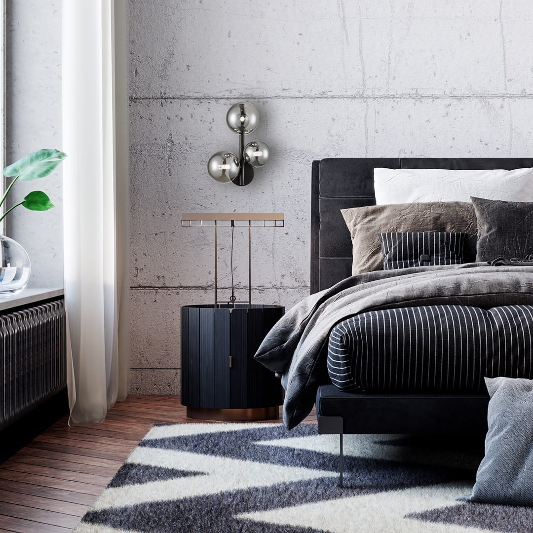 Czarny kinkiet klosze szklane kule dymione 3xG9 MILA - efektowny, klimatyczny i absolutnie zachwycający kinkiet czarny potrójny którego głównymi elementami przyciągającymi uwagę są klosze szklane kule dymione.