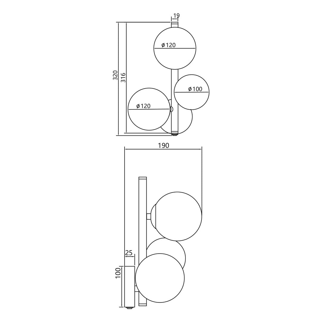Czarny kinkiet klosze szklane kule dymione 3xG9 MILA
