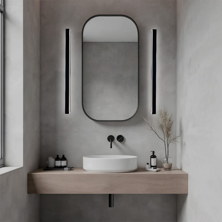 Minimalistyczna lampa łazienkowa wykonana z czarnego metalu, o prostokątnym kształcie, otoczona delikatnym światłem LED. Dzięki klasie ochronności IP54 idealnie nadaje się jako kinkiet do łazienki, zapewniając ochronę przed wilgocią i pyłem. Kinkiet jest idealnym rozwiązaniem nad lustrem, oferując funkcjonalne i równomierne oświetlenie. Technologia LED CCT pozwala na wybór temperatury barwowej światła przed montażem, umożliwiając dopasowanie oświetlenia do różnych potrzeb wnętrza.