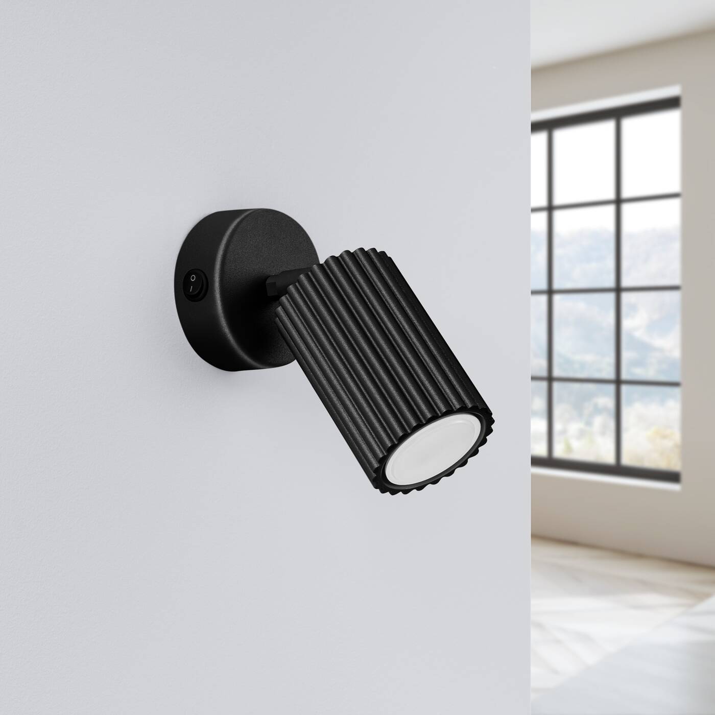 Czarny kinkiet nowoczesny ryflowany spot 1xGU10, kinkiet z włącznikiem KARBON