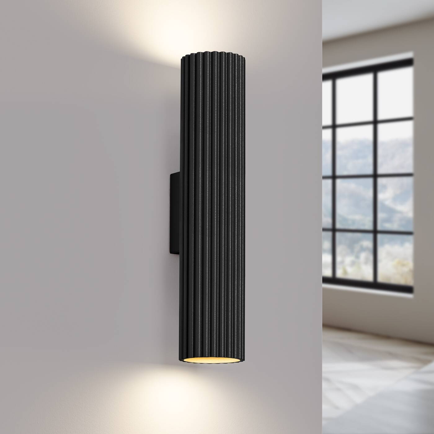 Czarny kinkiet tuba ryflowana 2xGU10 KARBON 30 - tuba ścienna świecąca góra dół, ryflowany kinkiet nowoczesny idealny do niemal wszystkich aranżacji, od industrialnych po nowoczesne. Kinkiet do salonu, kinkiet do sypialni, kinkiet na korytarz - ryflowana struktura powierzchni świetnie pasuje do lameli ściennych.