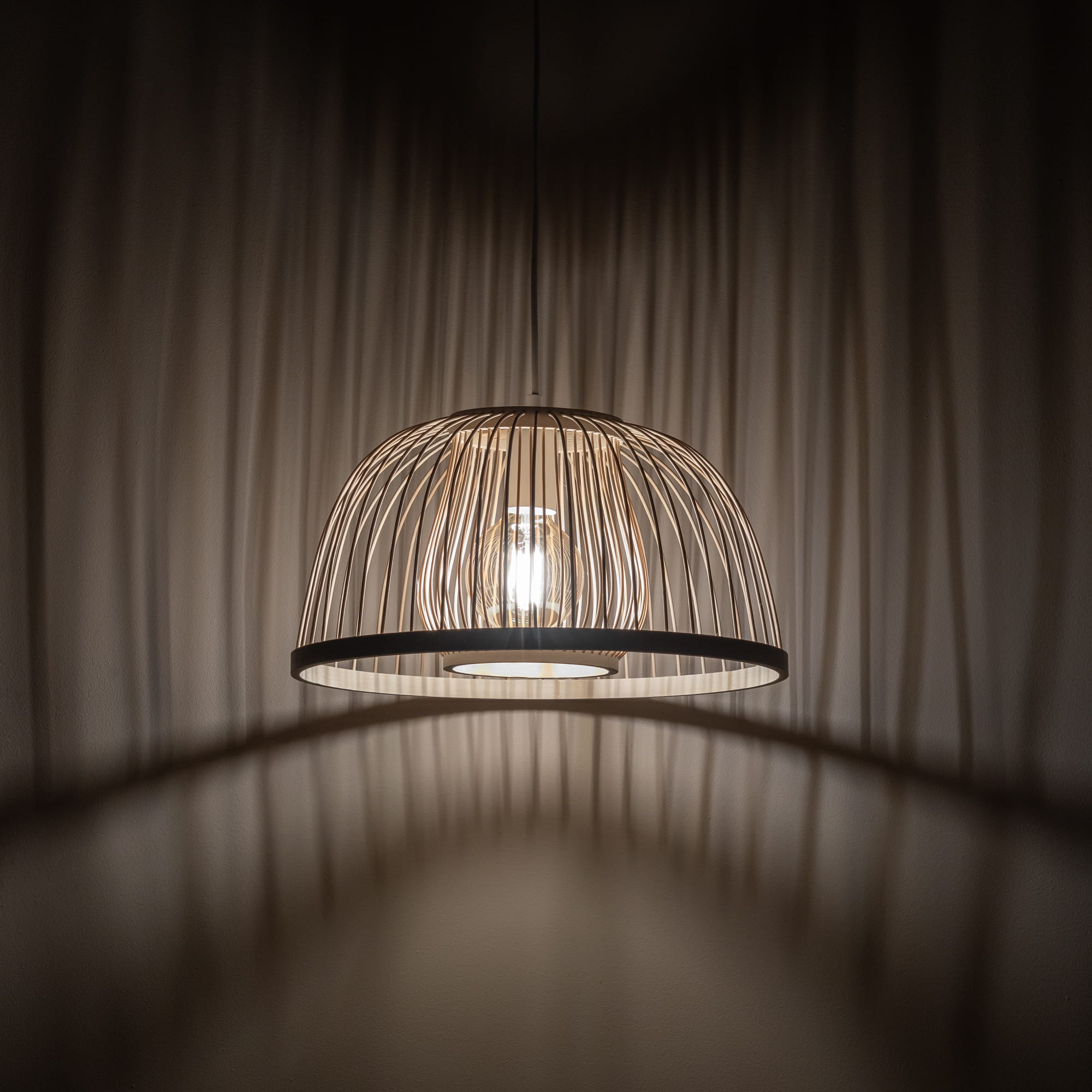 Długa lampa sufitowa BOHO KRABI - lampa z naturalnego drewna, lampa Boho do wnętrz urządzonych w klimatycznym, przytulnym stylu.
