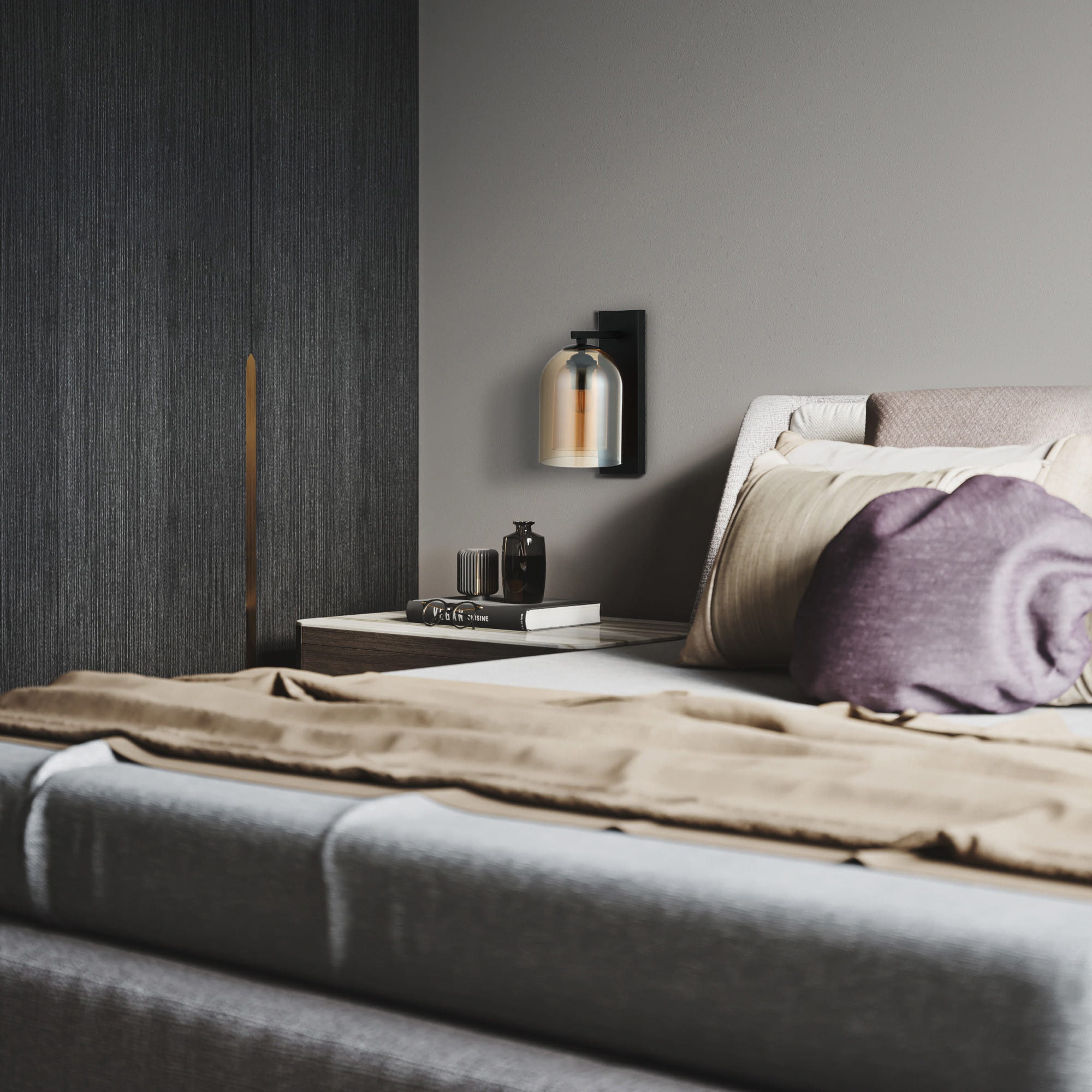 Kinkiet ścienny nowoczesny, który przyciąga uwagę nietuzinkowym zestawieniem kolorystycznym. Ciepły bursztynowy klosz doskonale komponuje się z czarną podstawą, tworząc elegancką, przyjemnie rozświetloną atmosferę. Klasyczna forma i delikatny, ciepły blask, podkreślają dekoracyjny, a zarazem ponadczasowy charakter, jaki prezentuje kinkiet ścienny ELARIS.