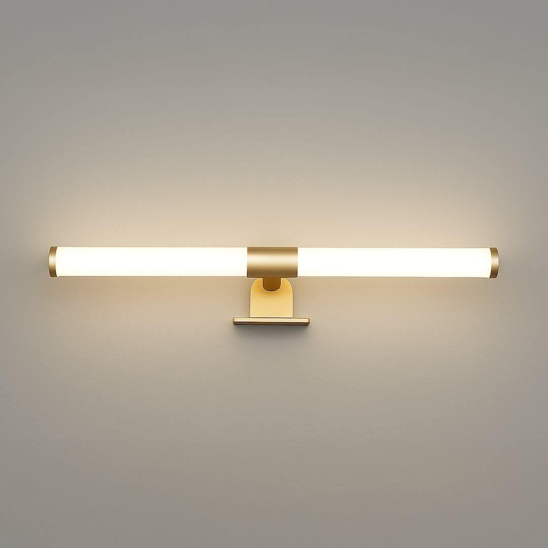 Kinkiet łazienkowy złoty IP44 APA gold 6W LED - kinkiet nad lustro do łazienki, złoty kinkiet ledowy obrazowy o podwyższonej odporności na warunki wilgotne. Estetyczna i użyteczna lampa łazienkowa nad lustro, złoty kinkiet idealny do baterii i dodatków w złotym kolorze.