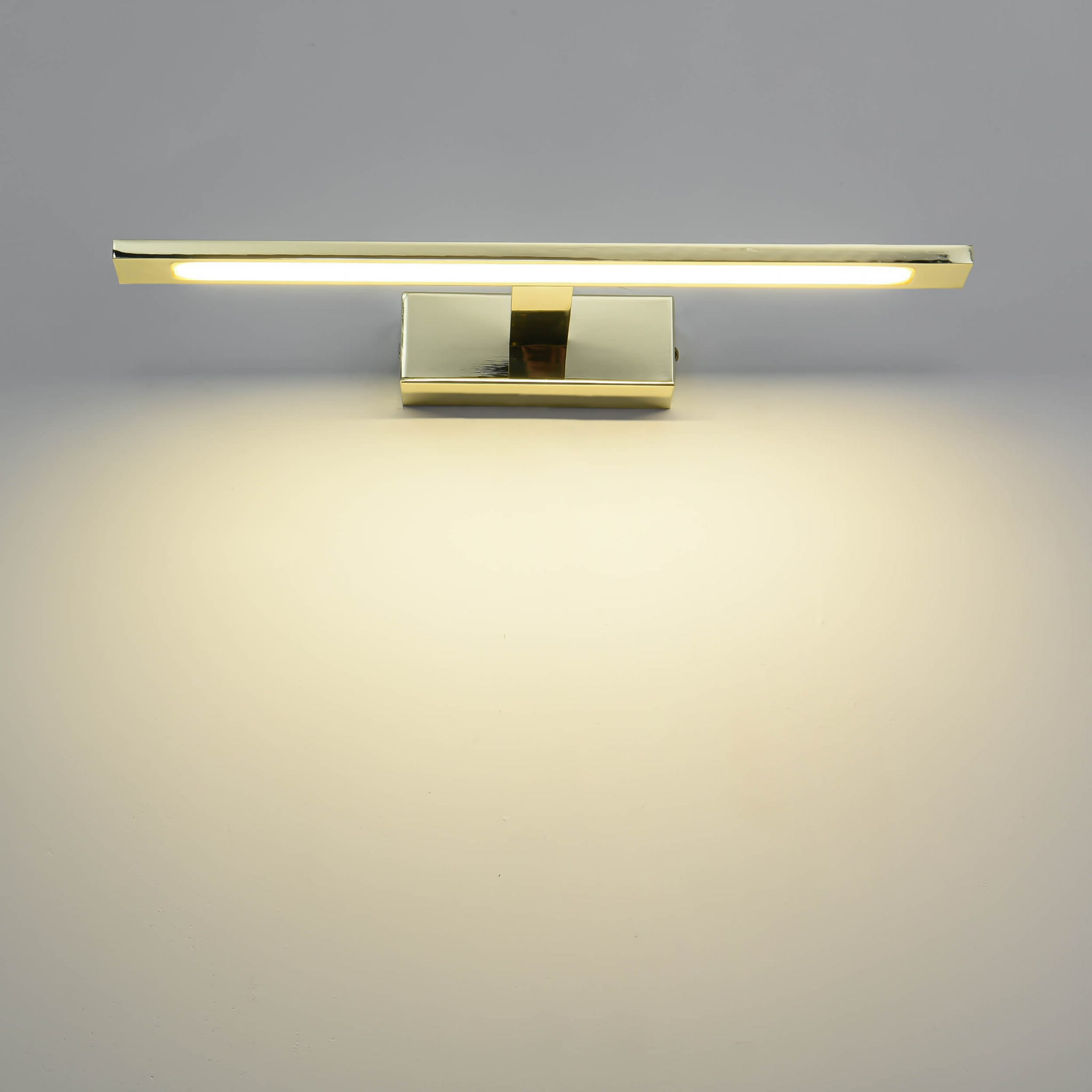 Lampa łazienkowa nad lustro ISLA, kinkiet złoty średni. Złota lampa łazienkowa, długi prostokąt, w którym wbudowane jest światło LED, w tym przypadku o neutralnym, jasnym, dziennym świetle.