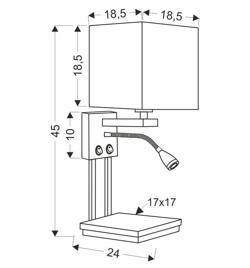 Kinkiet loftowy z półką i włącznikiem czarny 1xE14 40W + 2 LED THEO