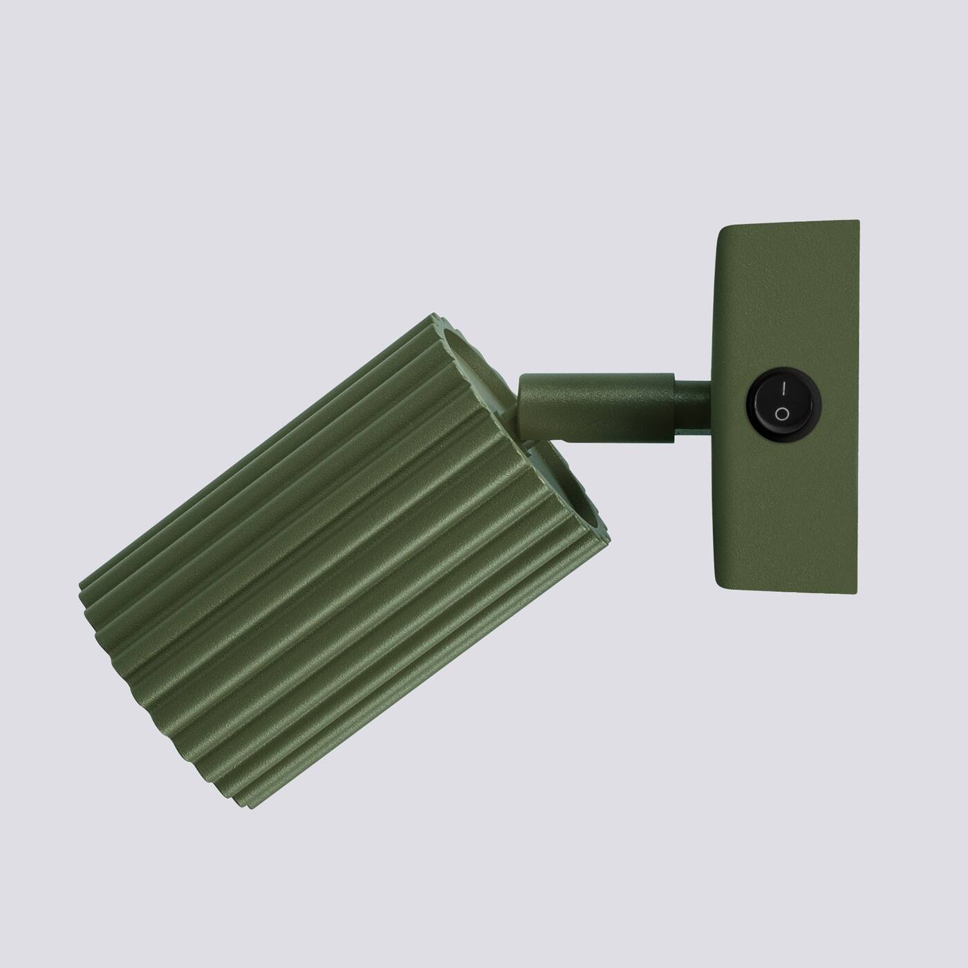Kinkiet nowoczesny ryflowany spot 1xGU10, kinkiet z włącznikiem KARBON zielony oliwkowy
