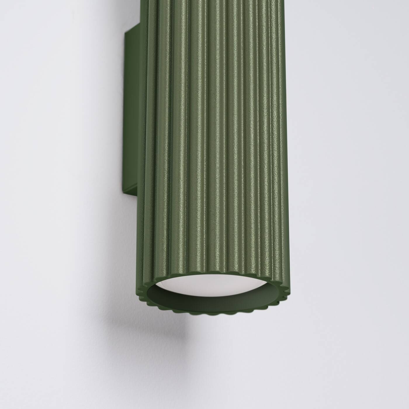 Kinkiet zielony oliwkowy tuba ryflowana 2xGU10, kinkiet KARBON 30 - kinkiet nowoczesny o konstrukcji ryflowanej tuby świetlnej świecącej góra - dół. Zaskakujący kolor i nowoczesna konstrukcja są gwarancją, iż kinkiet na ścianę KARBON 30 ozdobi większość nowoczesnych aranżacji.