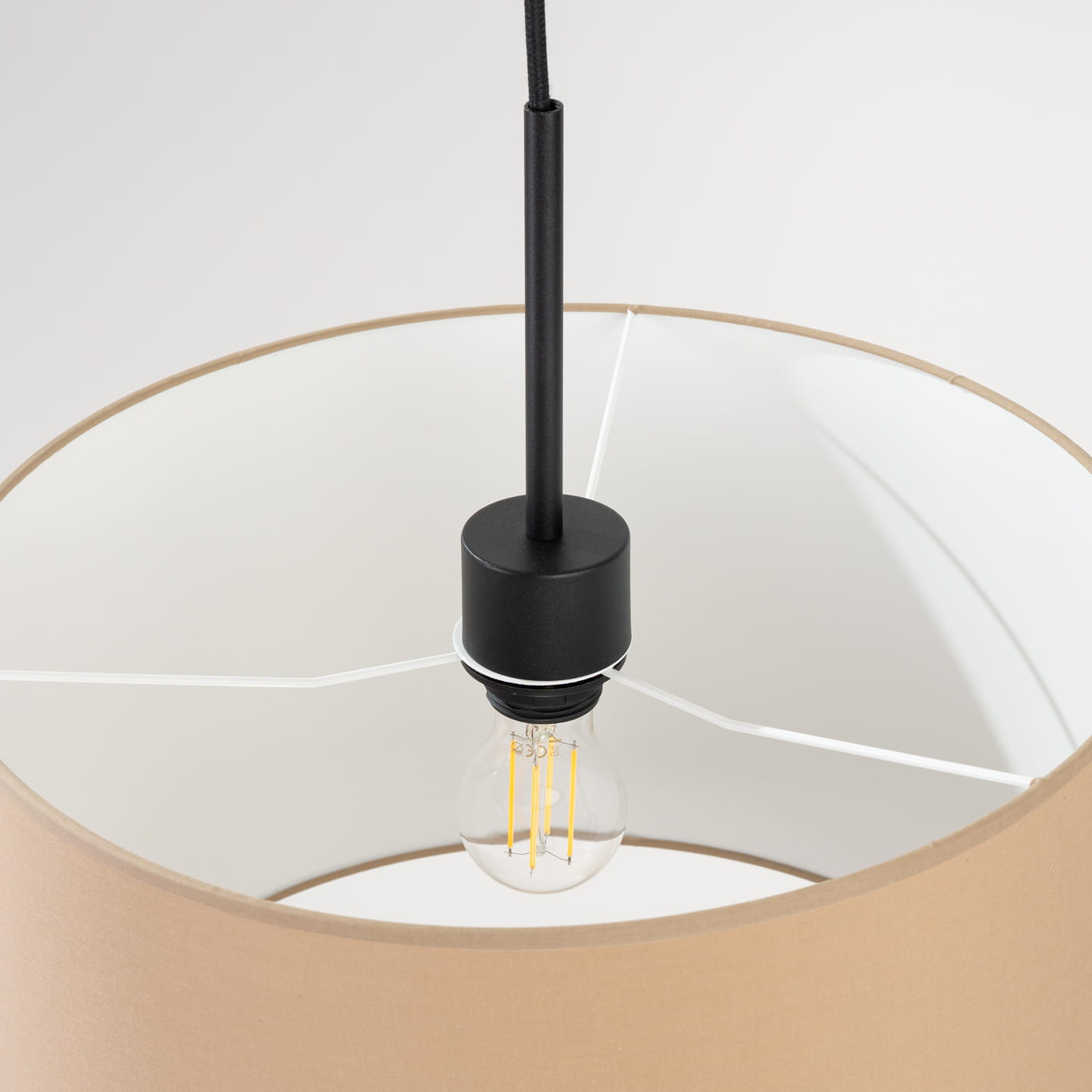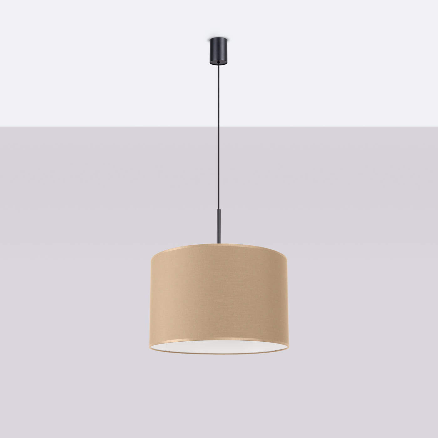 Klasyczna lampa wisząca beżowa pojedyncza 137 cm NEVIA taupe - modna lampa wisząca do salonu w klasycznej formie. Uzupełni i ociepli wnętrza w stonowanych naturalnych kolorach, pięknie zaprezentuje się jako lampa w salonie, lampa w sypialni, lampa nad stół w jadalni. Beżowa lampa wisząca do wnętrz urządzanych zgodnie z trendami kolorystycznymi.