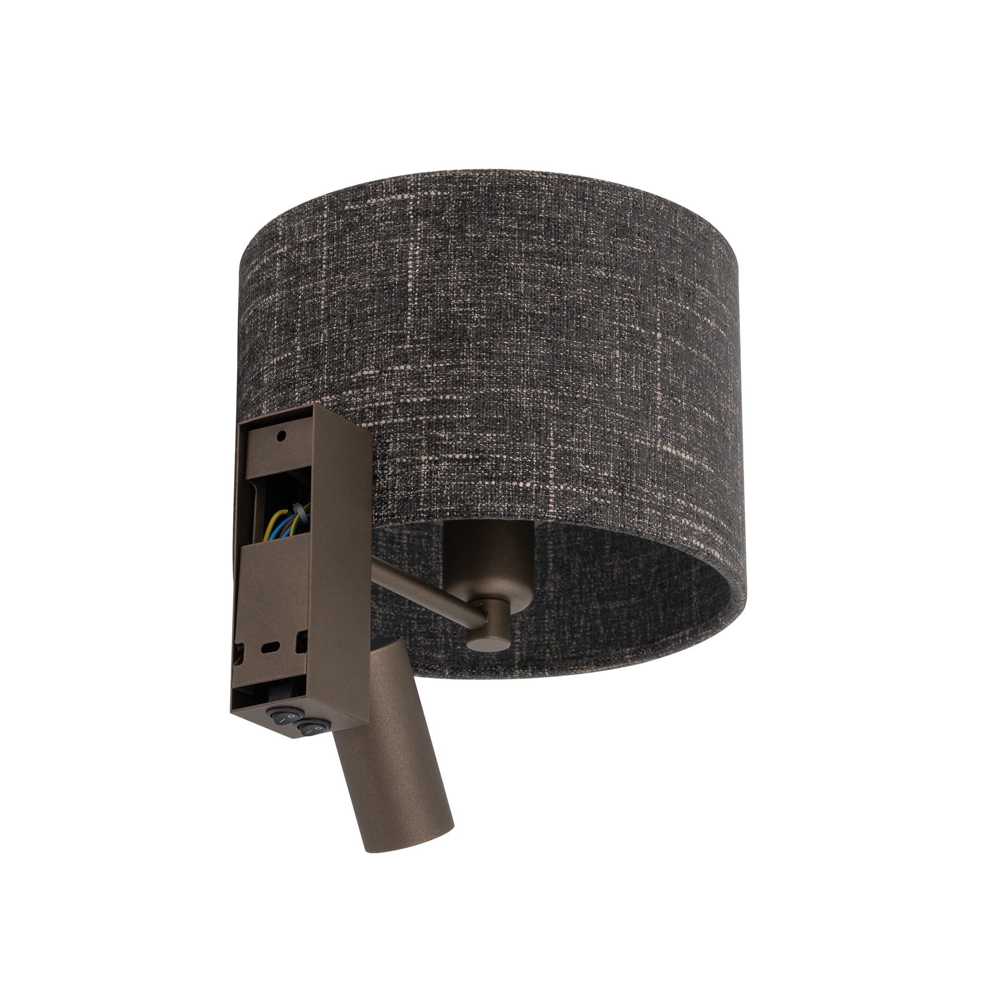 Klasyczny kinkiet z doświetlaczem czarny melanż modern classic AMARELA A - kinkiet do salonu, kinkiet do sypialni, kinkiet do hotelu wykonany z tkaniny w czarnym melanżowym kolorze.