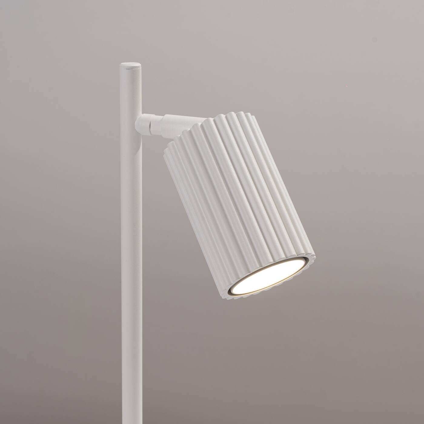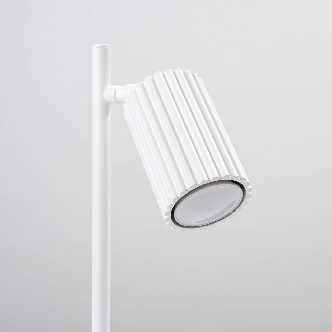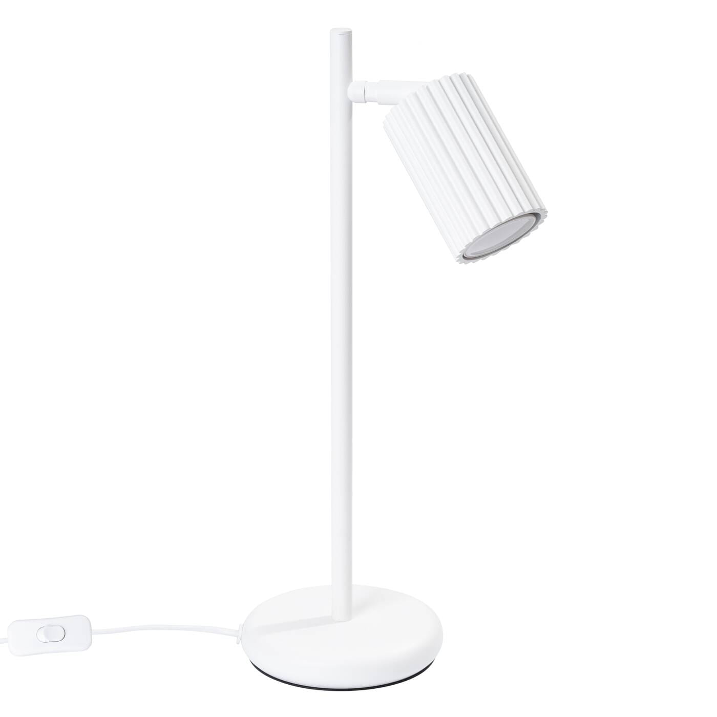 Lampa biurkowa stojąca KARBON biała - niemal finezyjna choć minimalistyczna lampa biurkowa biała z modnym, ryflowanym kloszem w kształcie niewielkiej tuby.