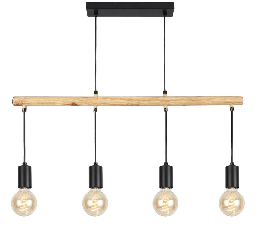 Lampa do jadalni wisząca czarna z drewnem 120 cm 4xE27 60W IZZY - lampa z drewnem wisząca, lampa skandynawska o prostej minimalistycznej konstrukcji - lampa do jadalni, lampa do kuchni.