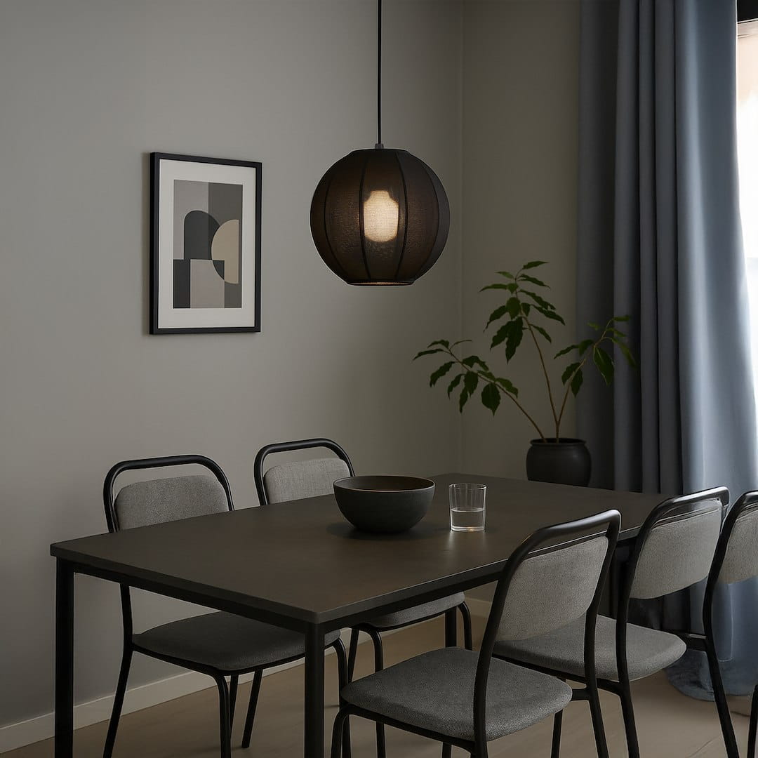 Lampa wisząca czarna DANA to subtelny element oświetlenia, który przyciąga wzrok swoją delikatną i harmonijną formą. Klosz w kształcie kuli, wykonany z materiału o czarnej fakturze, zapewnia miękkie i równomierne rozproszenie światła, tworząc przyjemną atmosferę w każdej przestrzeni. Eleganckie przeszycia biegnące przez całą powierzchnię klosza nadają lampie wyjątkowego charakteru, który idealnie pasuje do wnętrz inspirowanych stylem skandynawskim, klasycznym czy nowoczesnym minimalizmem.