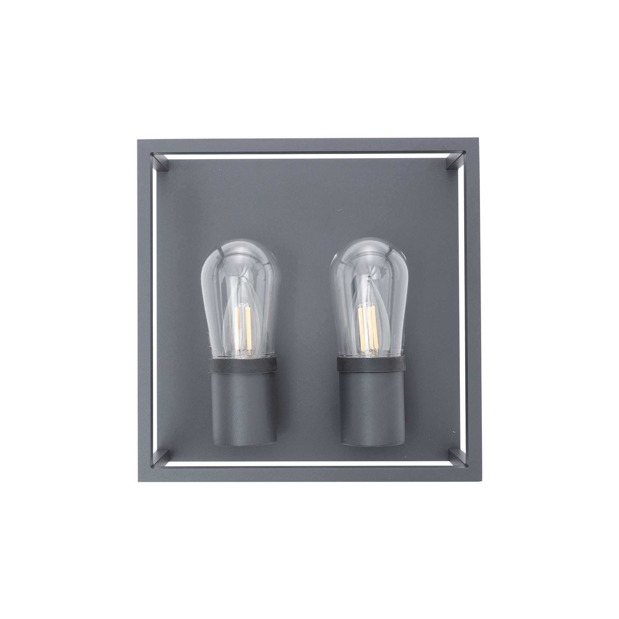 Lampa industrialna na elewację IP54, lampa zewnętrzna podwójna grafit MARGOT - lampa zewnętrzna o konstrukcji industrialnej skrzynki z dwoma żarówkami. Kinkiet na elewację, kinkiet na dom odporny na warunki atmosferyczne.