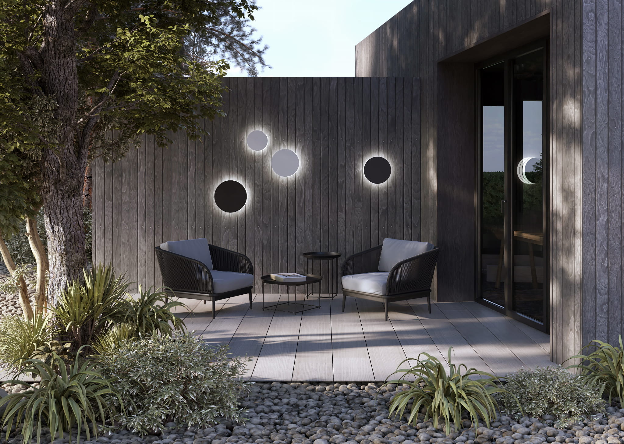 Lampa ledowa ścienna okrągła IP54 3000K 30 cm ARIA LED XL czarny - kinkiet zewnętrzny ledowy o ciepłej barwie światła LED - elegancka, przyciągająca wzrok dekoracja ścienna! Lampa na elewację, ale jednocześnie lampa do łazienki, lampa do pokoju kąpielowego o wysokiej odporności na warunki atmosferyczne i wilgotność.