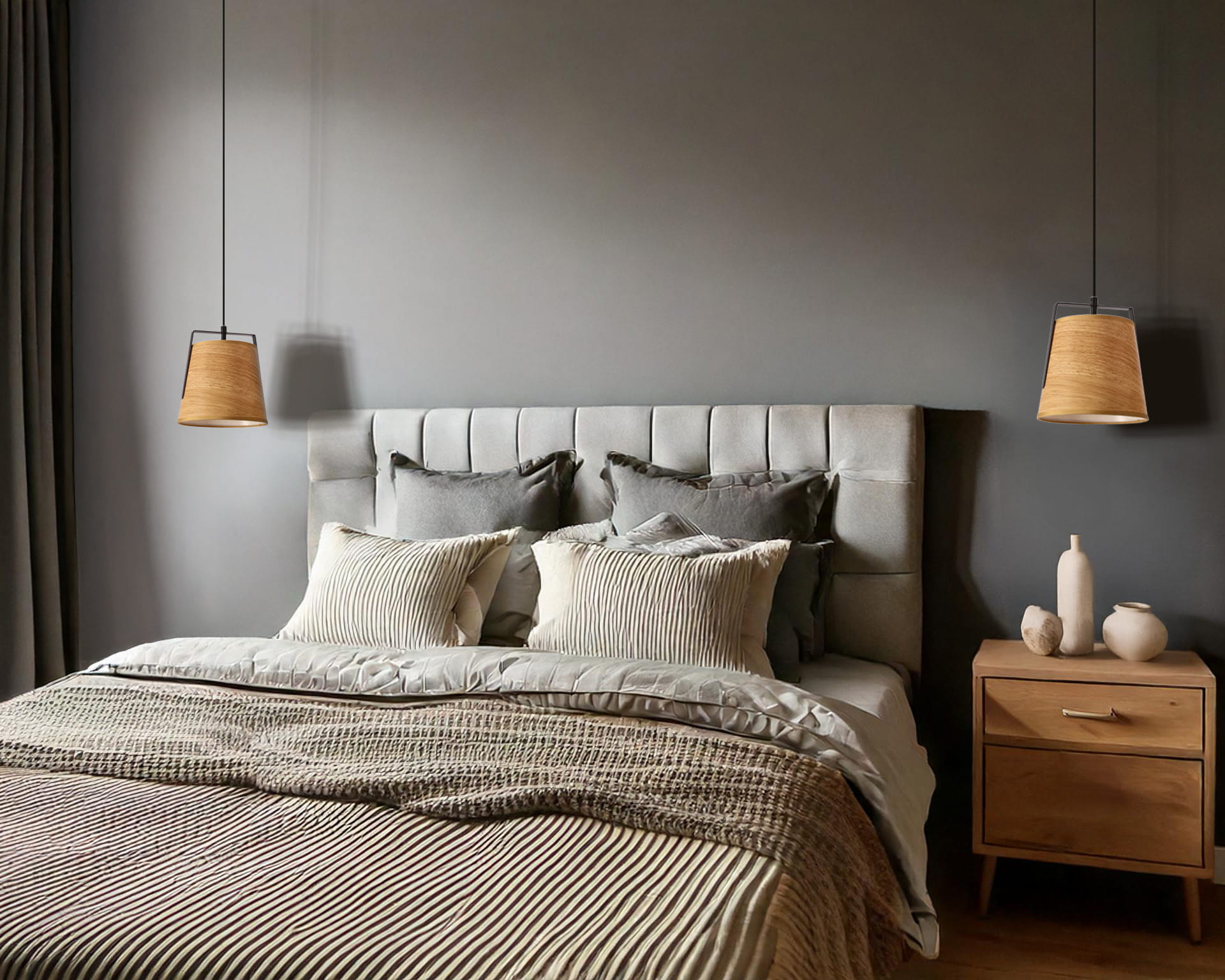 Materiał: zawiesie stalowe, abażur tkanina +PCV