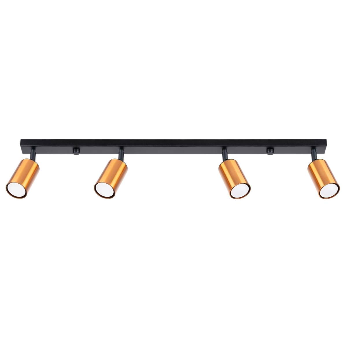 Lampa przysufitowa czarna z miedzianym listwa 4xGU10 plafon WINX 4L - czarna lampa sufitowa z miedzianymi reflektorkami typu spot - uzupełni i oświetli nowoczesne oraz industrialne wnętrza. Sprawdzi się jako lampa w kuchni, lampa do przedpokoju, lampa do biura, a nawet do stylowego salonu.