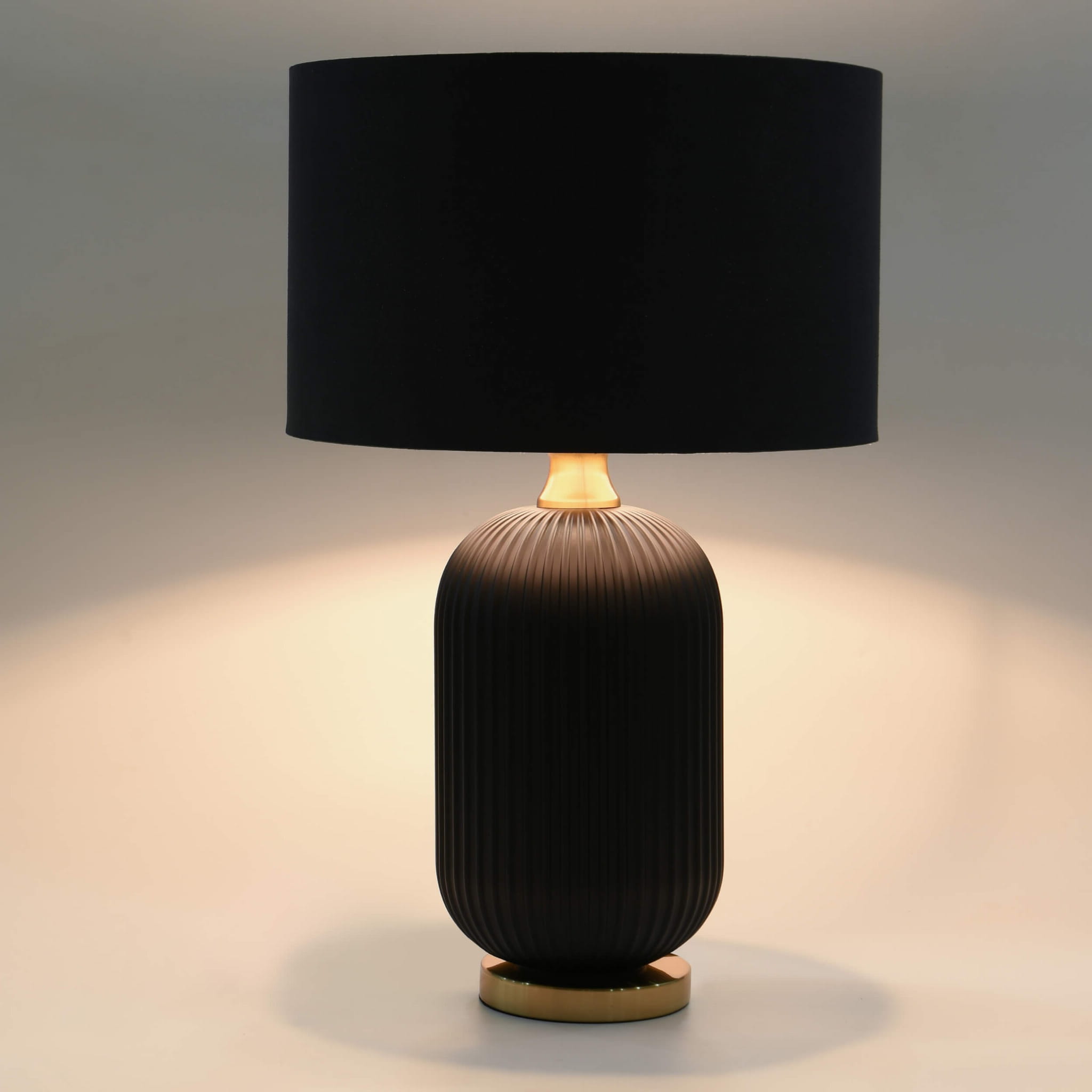 Lampa stołowa czarna Tamiza duża 1xE27 - elegancka lampa stojąca, lampa glamour w czarnym kolorze ze złotym wykończeniem. Piękna ozdoba stylowego wnętrza, zjawiskowo zaprezentuje się jako lampa stojąca w salonie, lampa w sypialni lampa do korytarza lub stylowej poczekalni.