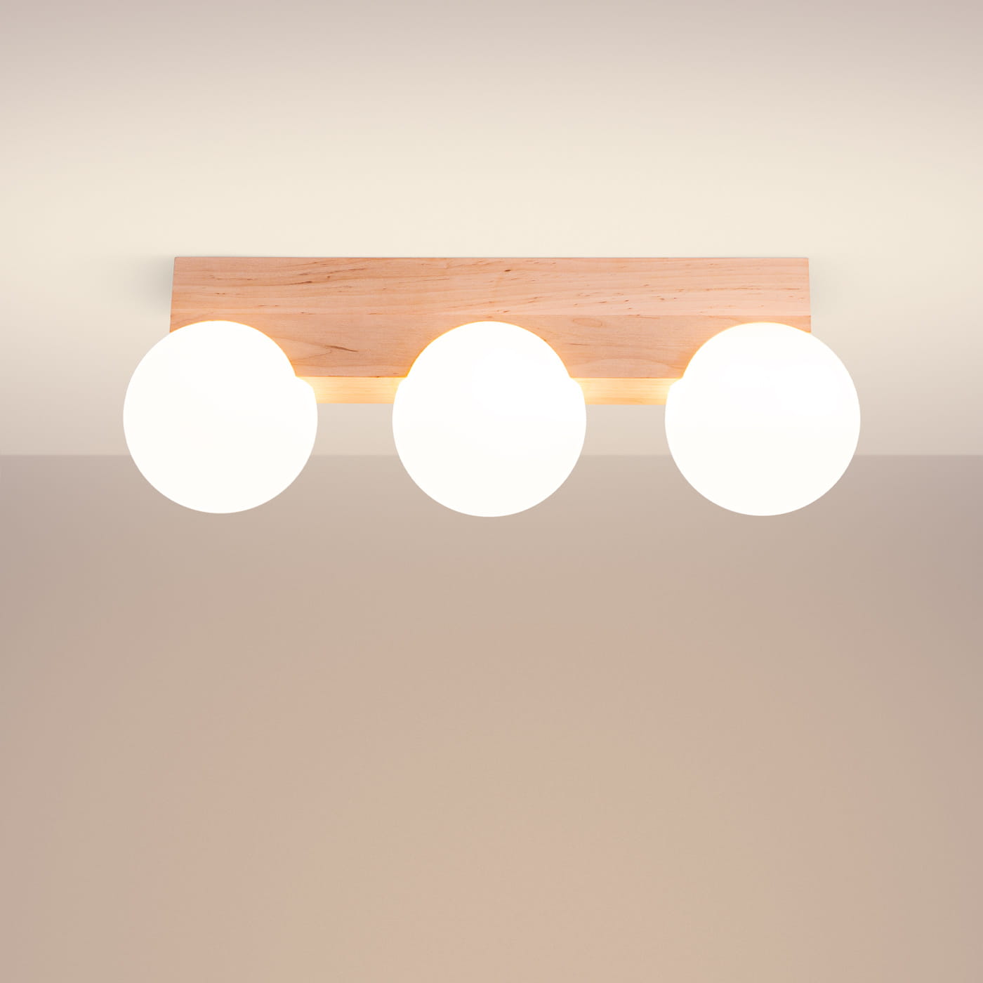 Lampa sufitowa drewniana klosze białe kule 3xG9 BULBO 3 naturalne drewno - lampa sufitowa potrójna wykonana z połączenia drewna ze szkłem. Oświetlenie rozproszone, miękkie i przytulne - lampa do sypialni, lampa do kuchni, lampa na korytarz. Nowoczesna lampa sufitowa w naturalnym klimacie z charakterem!