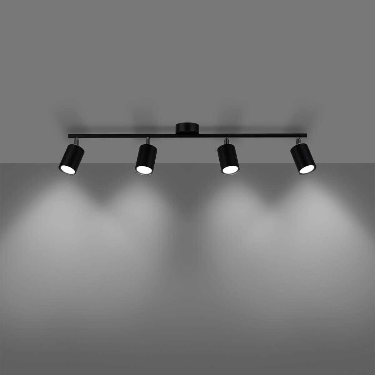 Lampa sufitowa listwa czarna 100 cm 4xGU10 LEMMI 4L - czarna lampa sufitowa nowoczesna typu spot z kloszami na ruchomych głowicach. Lampa sufitowa listwa o bardzo uniwersalnym zastosowaniu - fajnie zaprezentuje się jako lampa na korytarz lampa kuchenna, a nawet lampa biurowa.