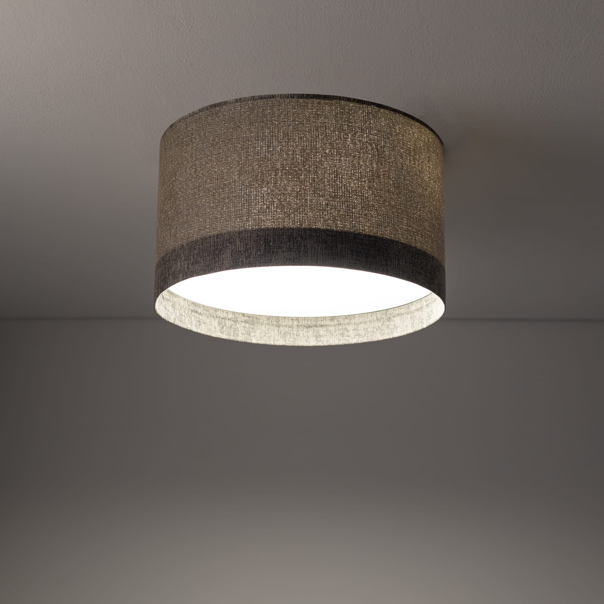 Lampa sufitowa plafon okrągły szary 2xE27 modern classic LAGO S - klasyczny plafon przysufitowy w odświeżonym, stylowym wydaniu. Szara lampa sufitowa wykonana z tkaniny o grubym splocie, pięknie dopełni aranżację jako lampa w sypialni, lampa w salonie, lampa na korytarz.