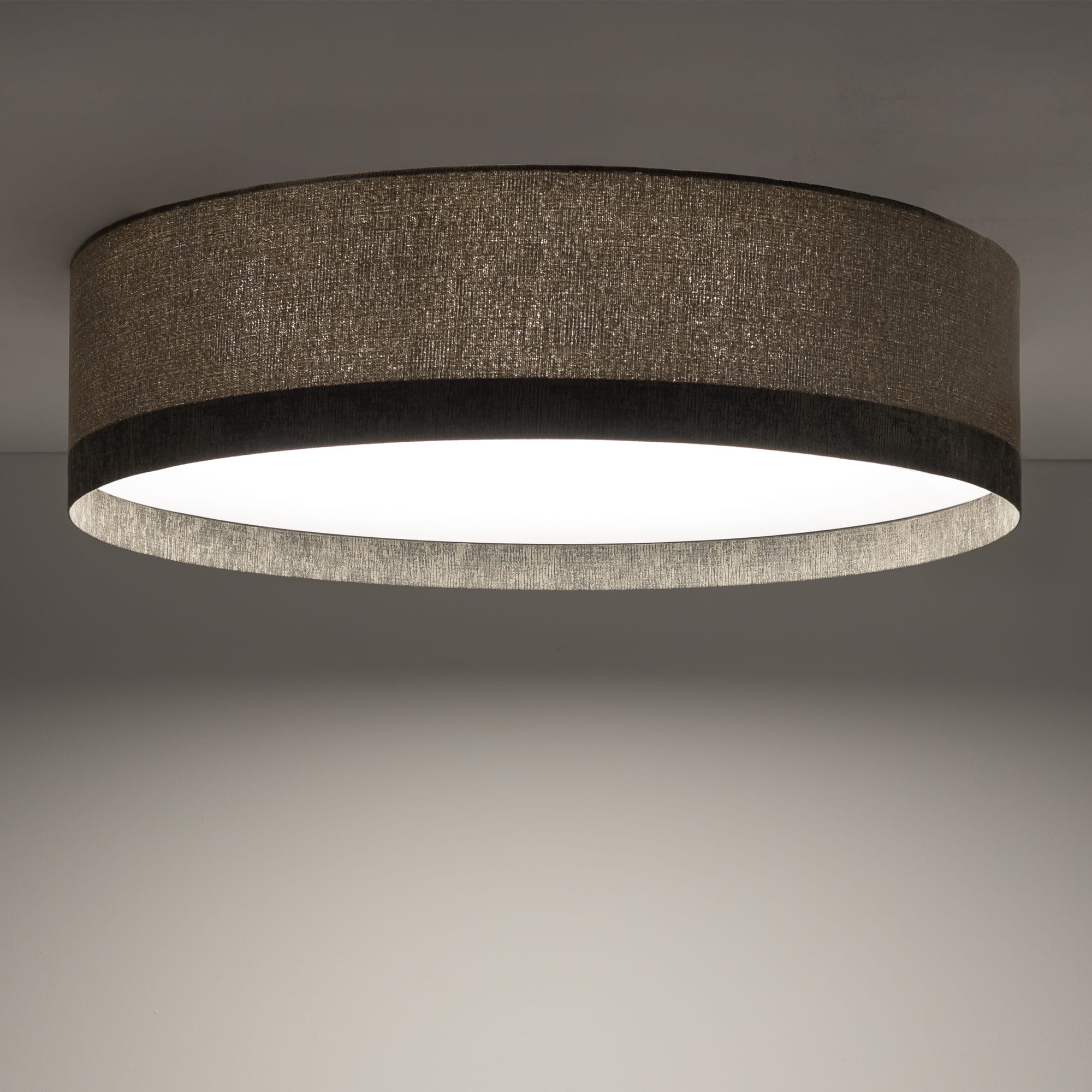 Lampa sufitowa plafon okrągły szary 7xE27 modern classic LAGO L - klasyczna lampa sufitowa, okrągły plafon sufitowy wykończony szarą tkaniną o grubym splocie w nowoczesnym, modnym wydaniu. spokojny, przytulna, uniwersalna lampa sufitowa pasująca do większości aranżacji.