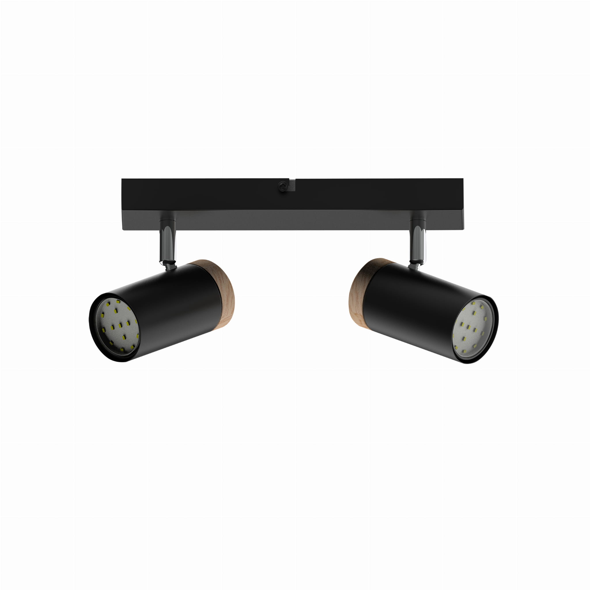 Lampa sufitowa podwójna punktowa czarna z drewnianym 2xGU10 LAGOS spot - lampa sufitowa regulowana idealna jako lampa na korytarz, lampa do kuchni - reflektorki zamocowane za pomoc ruchomych głowic kieruj strumień światła w pożądanym kierunku.