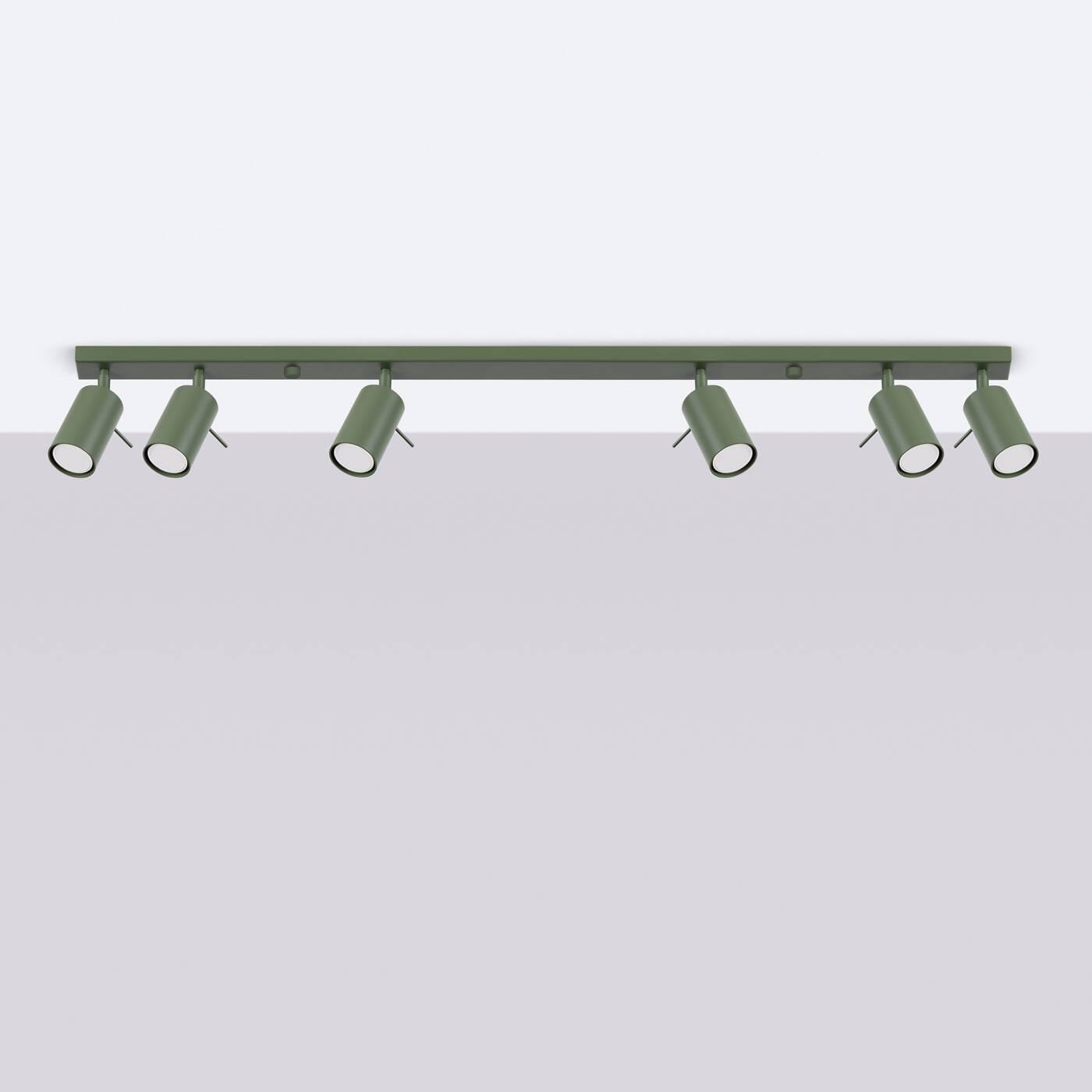 Lampa sufitowa regulowana listwa 6xGU10 plafon RING 6L spot zielony oliwkowy