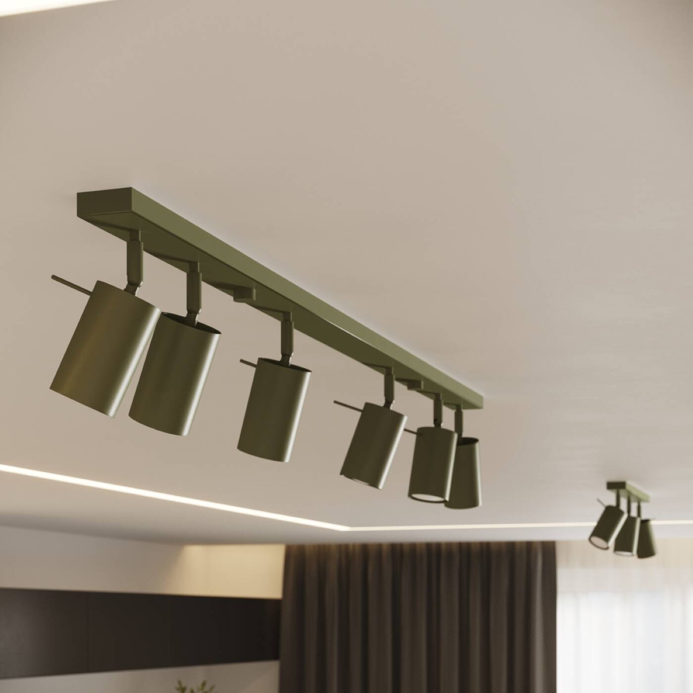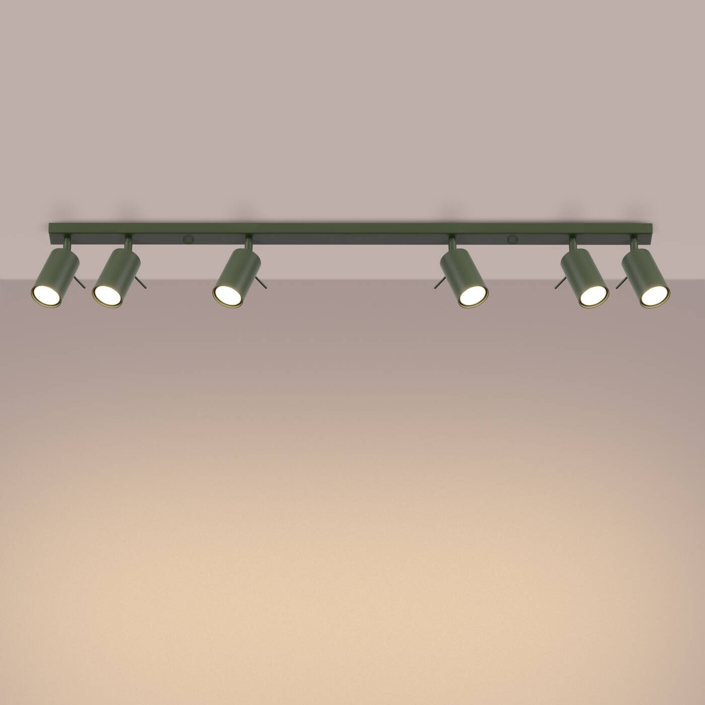 Lampa sufitowa regulowana listwa 6xGU10 plafon RING 6L spot zielony oliwkowy - nowoczesna lampa sufitowa listwa na 6 reflektorków - lampa do garderoby, lampa na korytarz, lampa do kuchni - ale nie tylko. Sprawdzi się wszędzie gdzie chcemy doświetlić i wyróżnić ulubioną strefę.