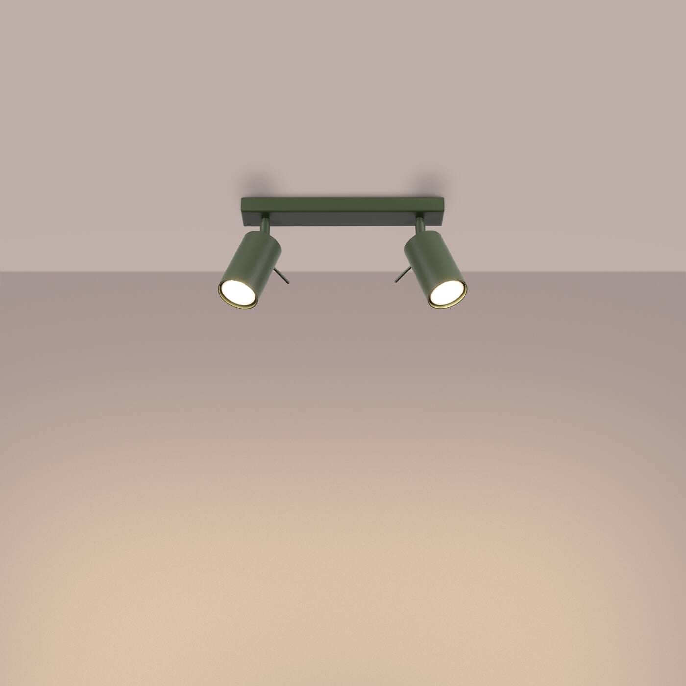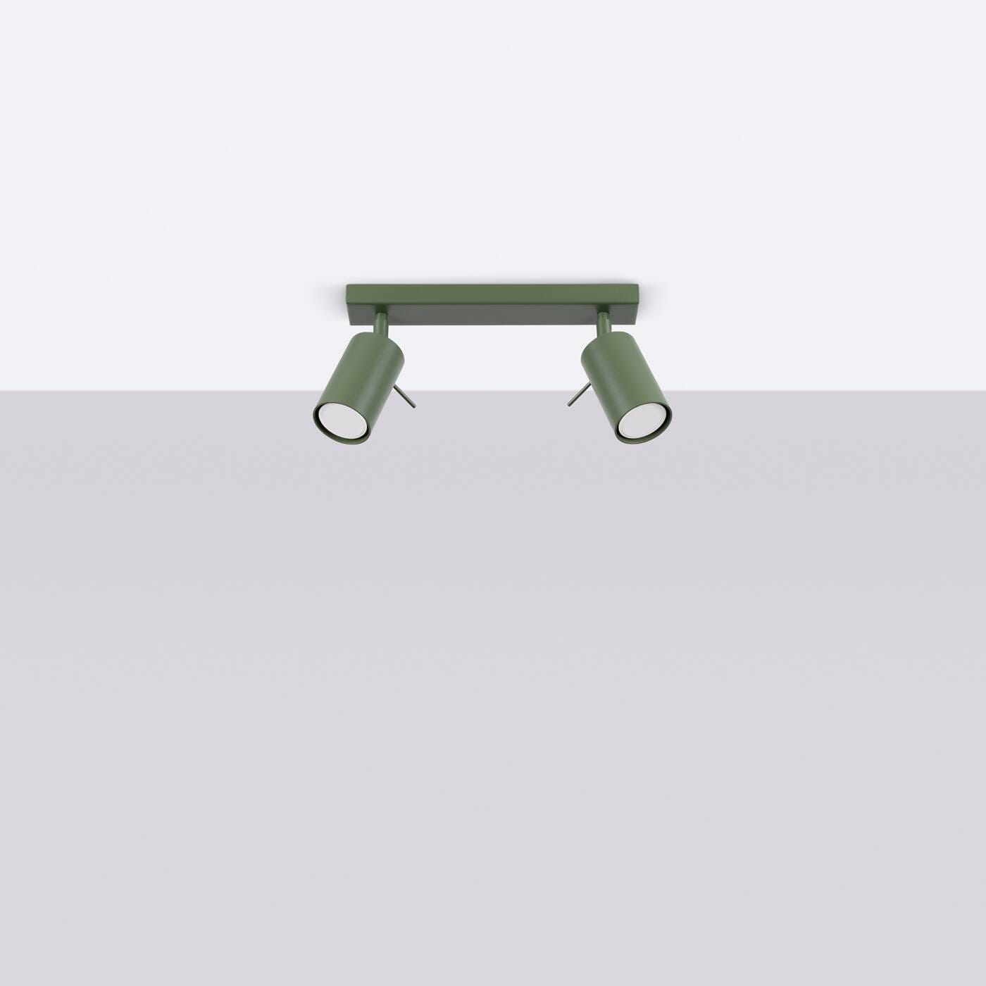 Lampa sufitowa podwójna w kolorze zielonej oliwki to nowoczesna lampa sufitowa regulowana - cylindryczny kształt reflektorów w połączeniu z minimalistyczną formą sprawia, że lampa doskonale odnajduje się w nowoczesnych i industrialnych wnętrzach, podkreślając ich charakter.