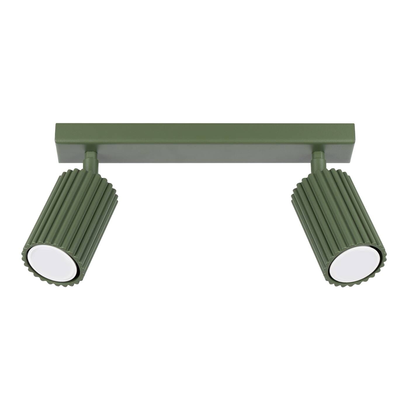 Lampa sufitowa ryflowana 2xGU10, plafon KARBON 2 spot zielony oliwkowy - przysufitowa lampa typu spot z ruchomymi reflektorkami. Lampa do kuchni, lampa na korytarz, lampa do garderoby - nowy kolor zielonej oliwki! Ryflowana lampa sufitowa podwójna, świetnie zaprezentuje się w aranżacjach z lamelami ściennymi.