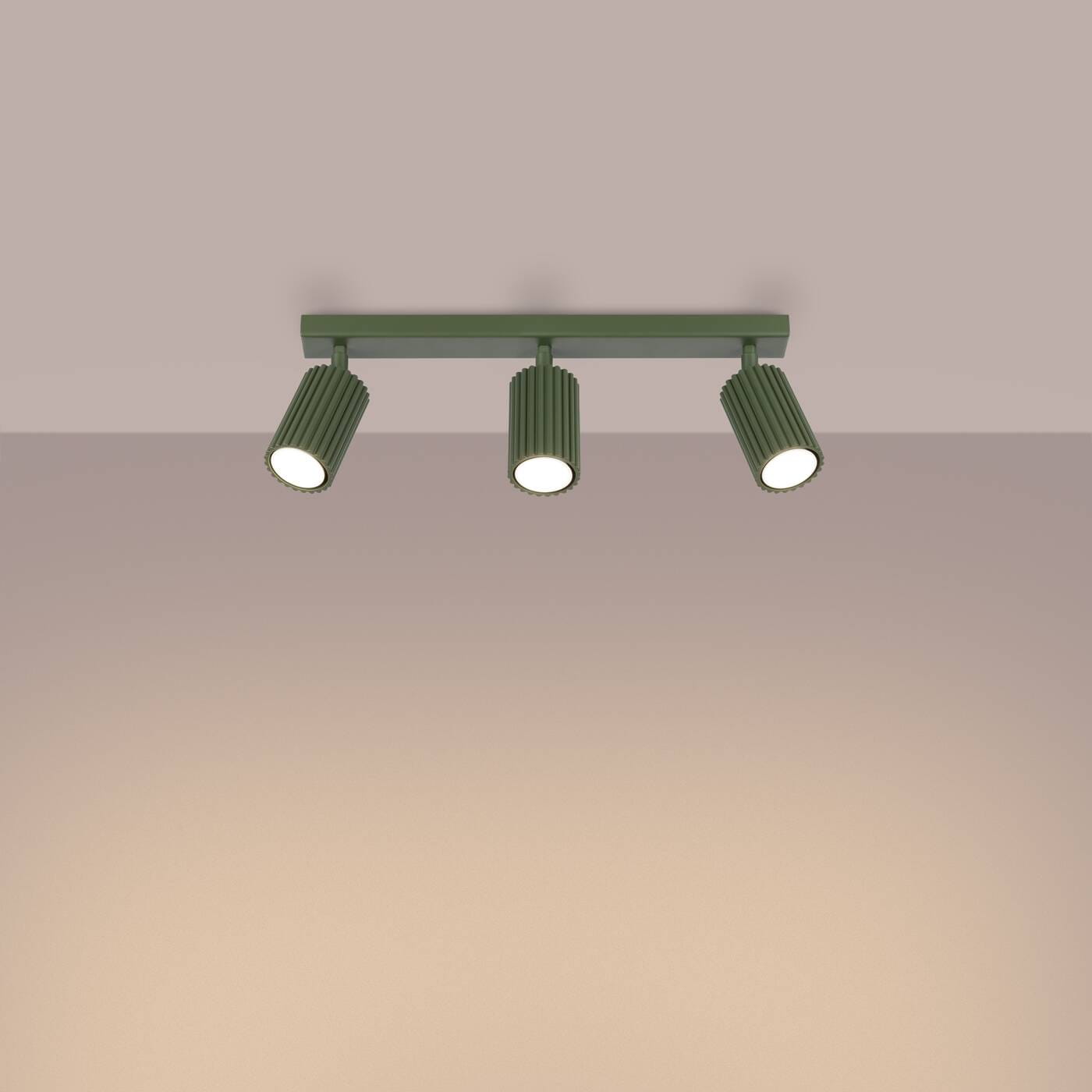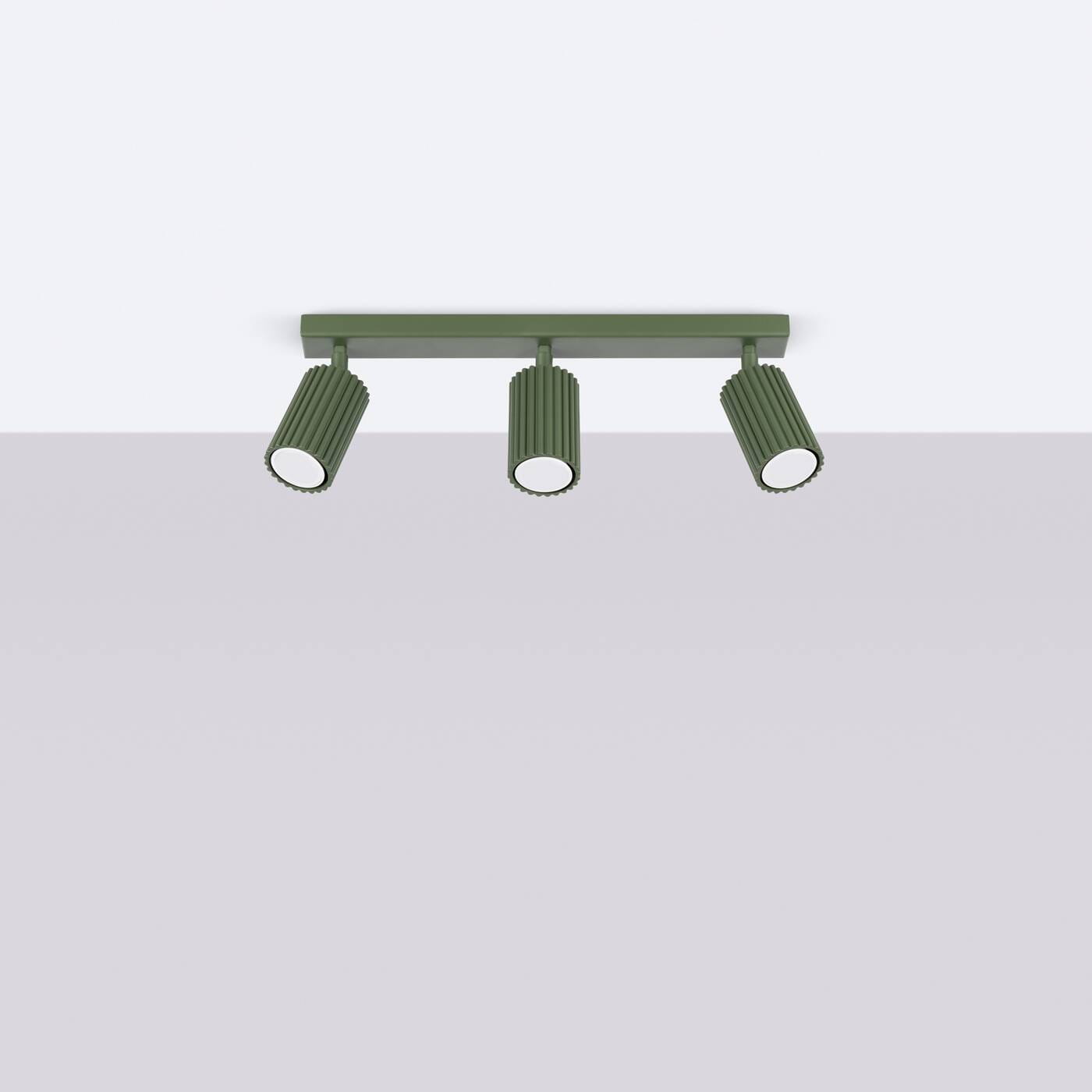 Lampa sufitowa ryflowana 3xGU10, plafon KARBON 3L spot zielony oliwkowy