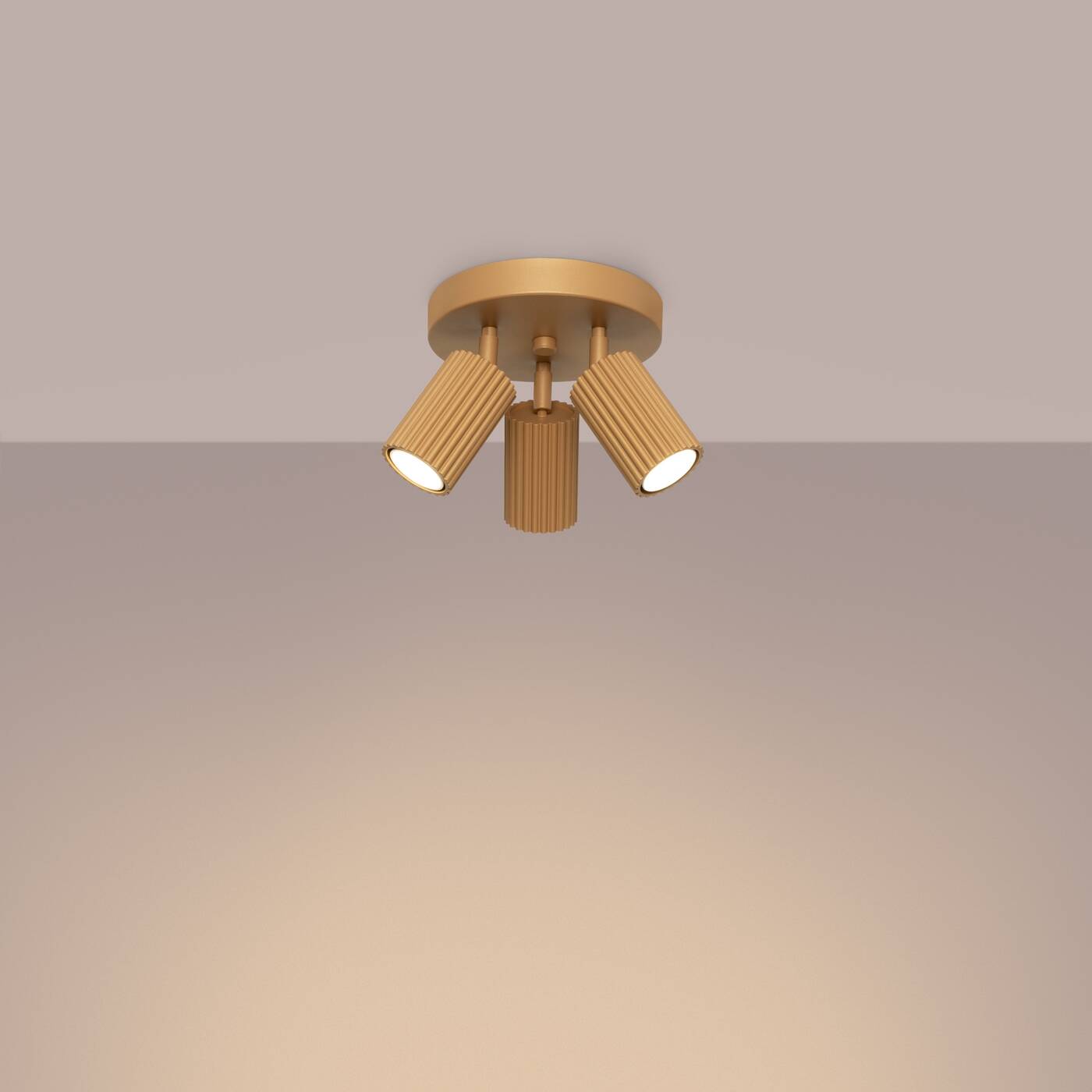 Lampa sufitowa złota ryflowana 3xGU10, plafon KARBON 3P spot