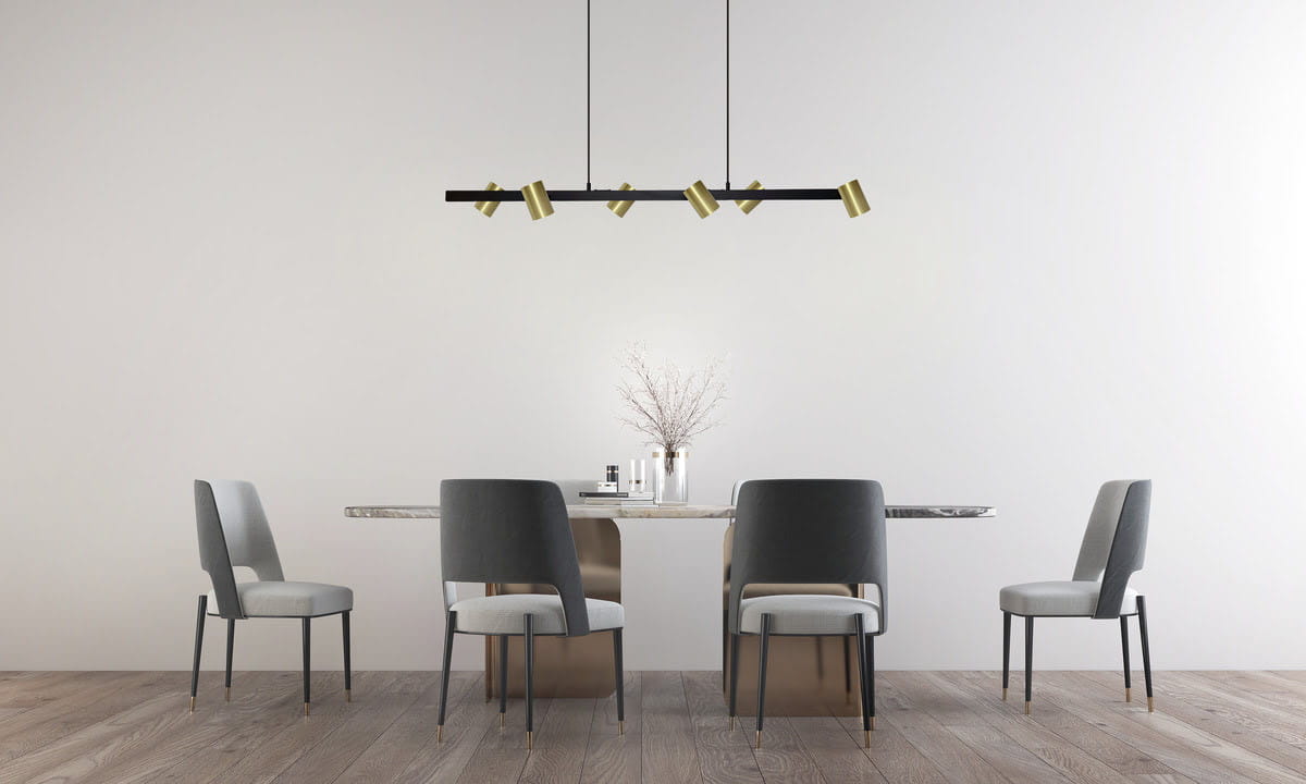 Lampa wisząca czarna ze złotym SNOW 6xGU10 - nowoczesna lampa wisząca, idealna jako lampa nad stół w kształcie prostokąta.