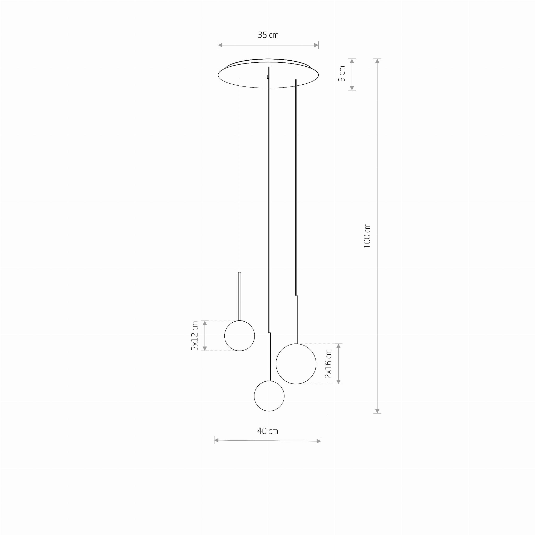 Wysokość abażura/klosza/reflektora: 2x12/1x16 cm