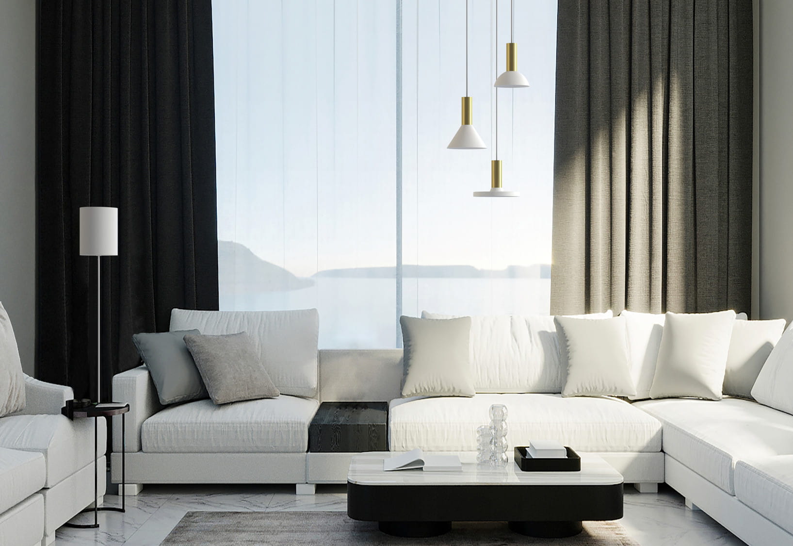 Lampa wisząca potrójna biała ze złotym 130 cm HERMANOS