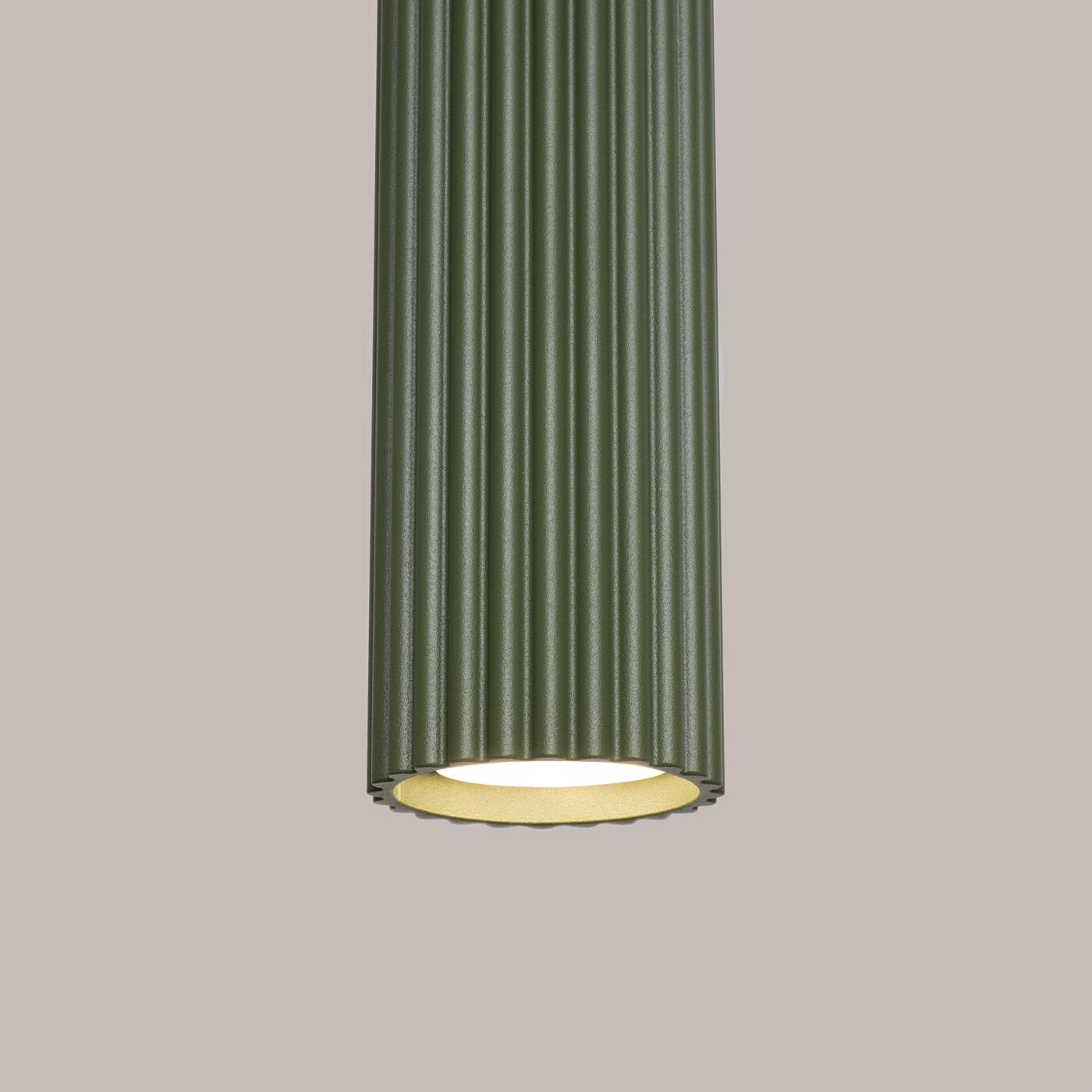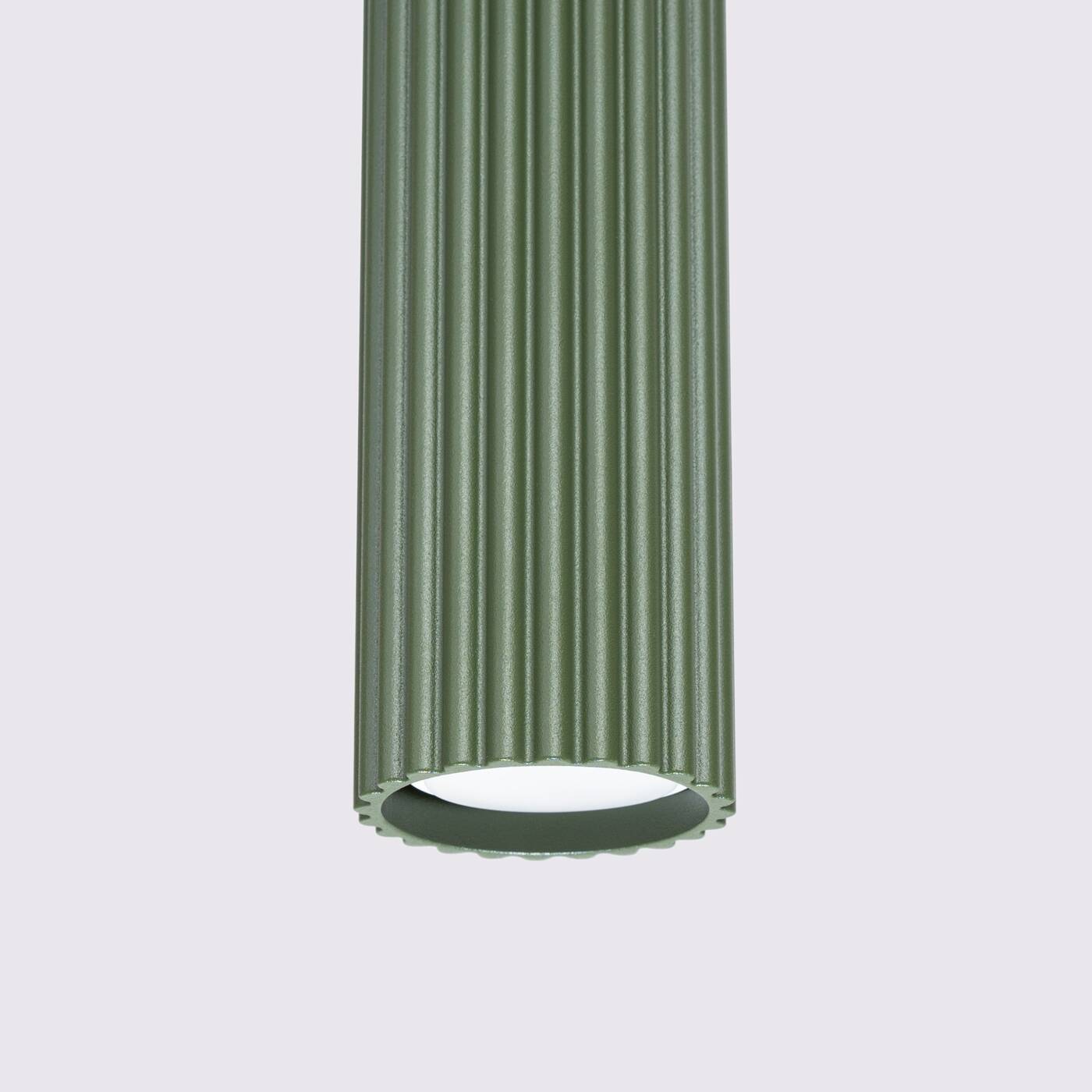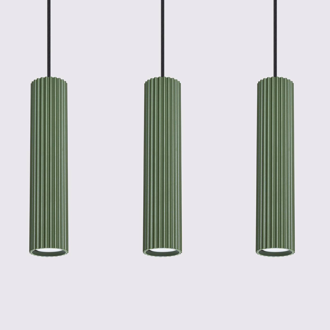 Lampa wisząca potrójna zielona oliwka tuby sufitowe ryflowane 3xGU10 KARBON 3L - nowoczesna lampa wisząca tuby sufitowe ryflowane w nowym fantastycznym kolorze zielonej oliwki. Lampa nad stół, lampa nad wyspę - potrójna lampa wisząca która fantastycznie prezentuje się z aranżacjami nowoczesnymi w tym również z panelami ściennymi.