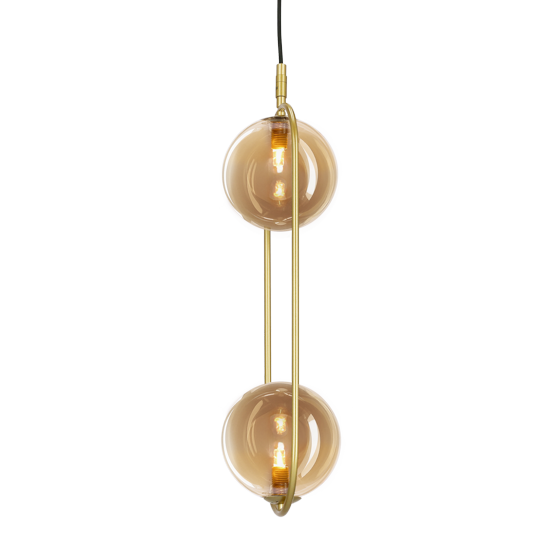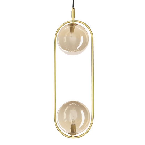 Lampa wisząca złota 140 cm 2xG9 klosze szklane kule bursztynowe CORDEL - wisząca lampa nowoczesna klosze szklane kule w modnym kolorze amber! Elegancka lampa do salonu, lampa do sypialni - emituje klimatyczne, rozproszone światło. Złota lampa wisząca - prawdziwa ozdoba każdej aranżacji.
