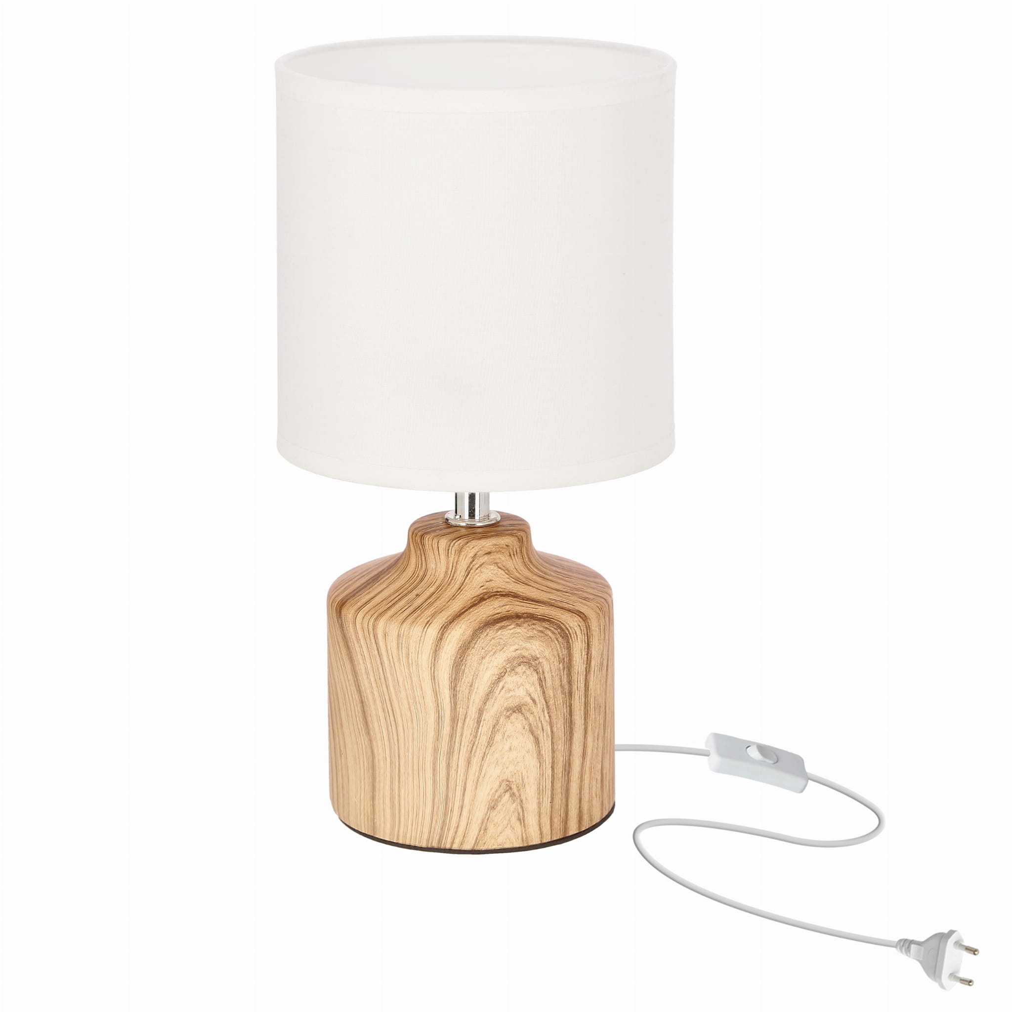 Lampka nocna łącząca w sobie funkcjonalność, ponadczasowy styl i subtelność - idealny wybór dla miłośników ciepłych, naturalnych wnętrz. Ceramiczna podstawa w imitacji drewna ze słojami oraz klasyczny biały abażur tworzą zgraną, harmonijną całość - lampka do salonu, lampka do sypialni, która wprowadza do pomieszczenia przytulny nastrój i stanowi efektowny akcent dekoracyjny. Idealna również lampa na komodę lub lampa biurkowa.