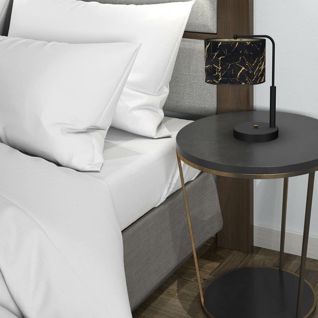 Lampka nocna do sypialni czarna ze złotym SENSO Black/Gold 1xE27 - elegancka lampa stojąca, lampa nocna do sypialni, lampa stołowa czarna ze złotym. Dopełni aranżacje jako lampa glamour ale również w innych ekskluzywnych wnętrzach będzie efektowną ozdobą.