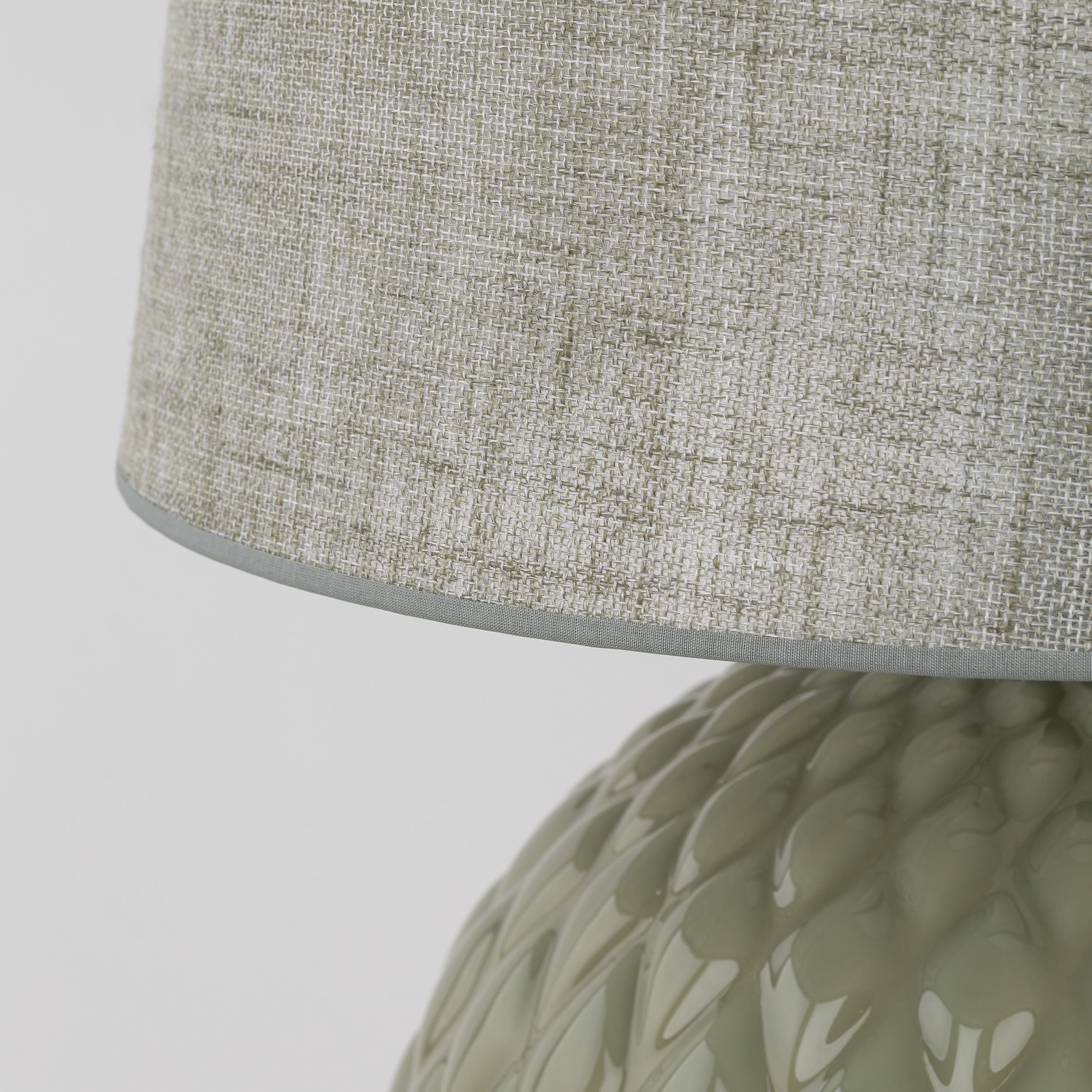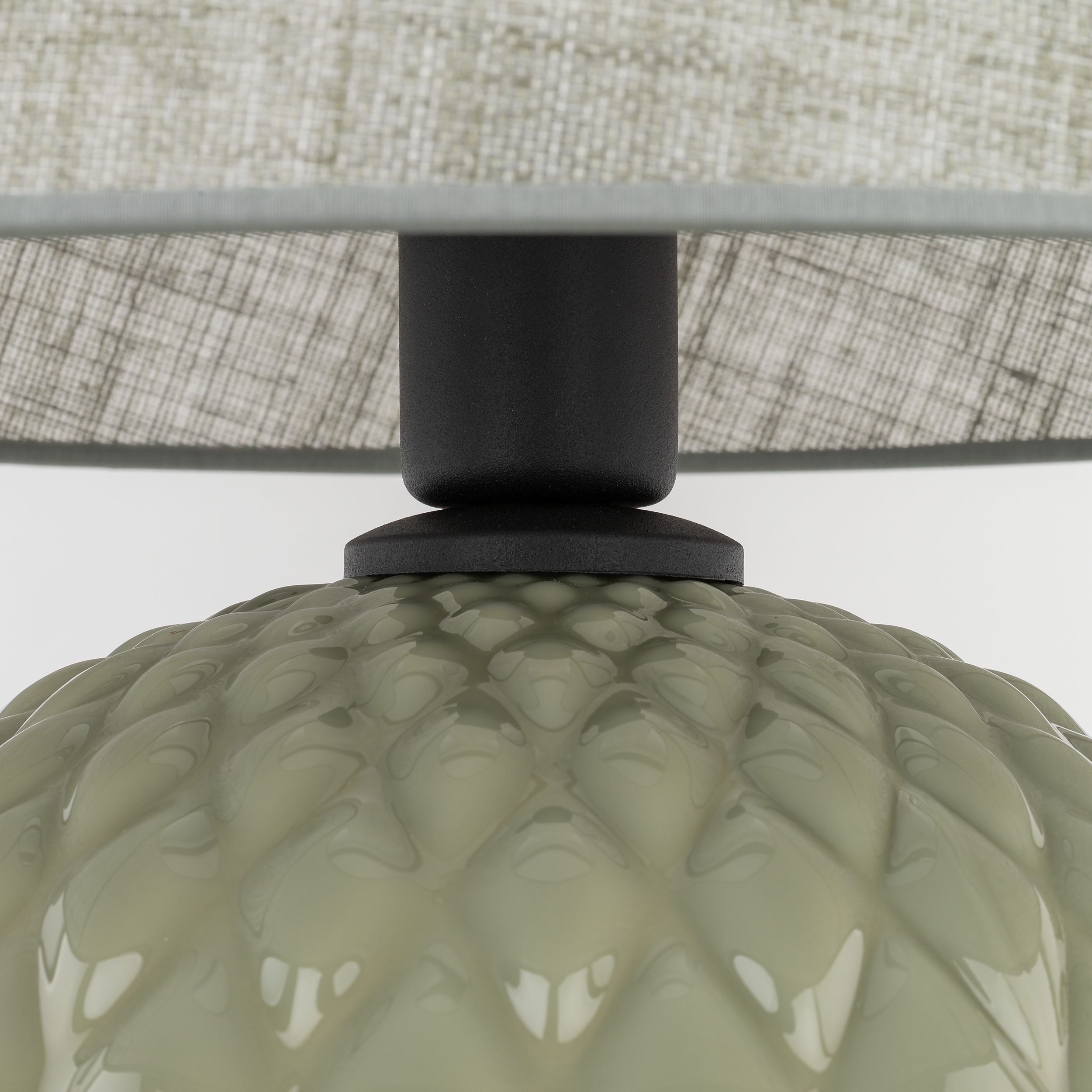 Lampka stojąca do salonu 1xE27 zielona oliwka SANTANA - urocza lampa stojąca do salonu idealna jako lampa na komodę, ale również jako lampka nocna do przytulnej sypialni. Wykonana z ceramiki szkliwionej ryflowanej lampa stołowa z abażurem w modnym oliwkowym kolorze będzie świetnym klimatycznym doświetleniem i ozdobą w gustownym, przytulnym wnętrzu.